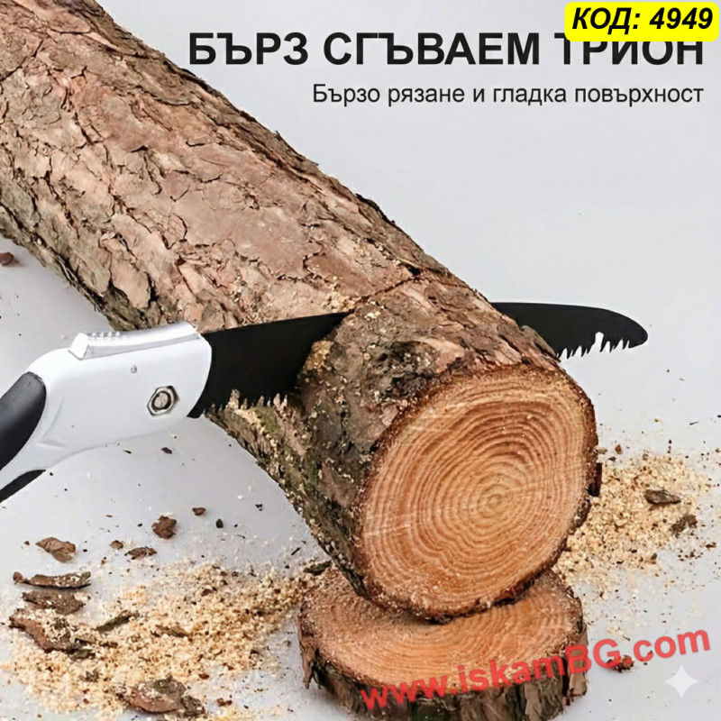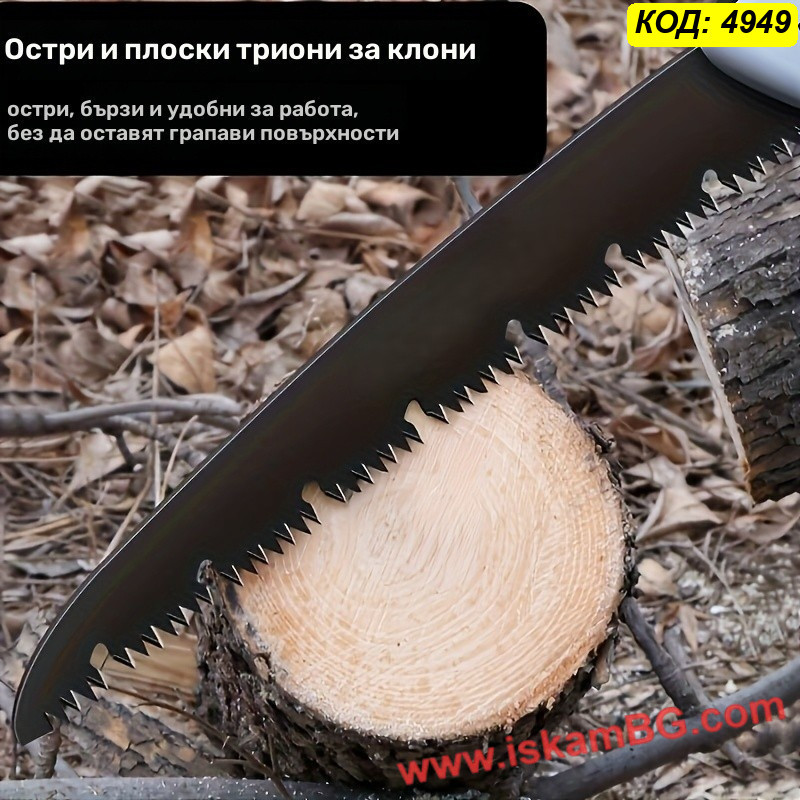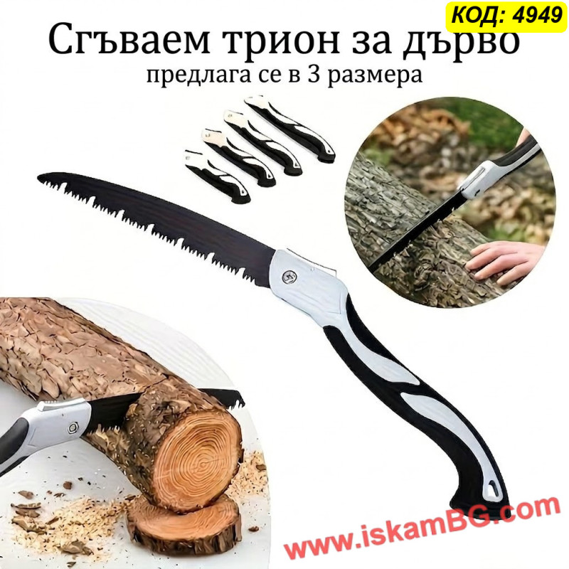 Сгъваем трион за дърво за рязане на клони, дървесина и сух материал в градината, при къмпинг или при работа на открито. Острието от SK5 стомана, тройно заточените зъби и каналите за отвеждане на стружките помагат за по-плавен и чист срез. Сгъваемият механизъм и заключването правят триона удобен за носене и по-сигурен при работа.    Виж пълното описание
