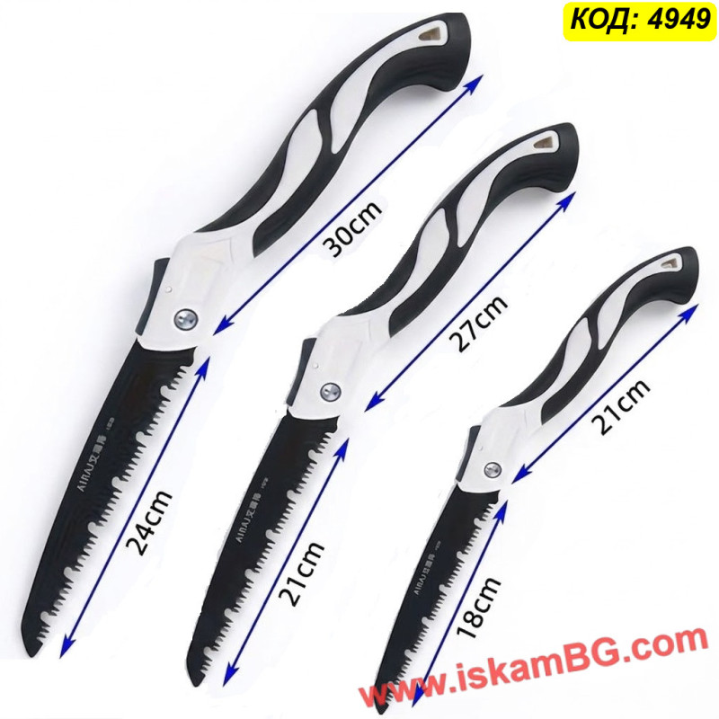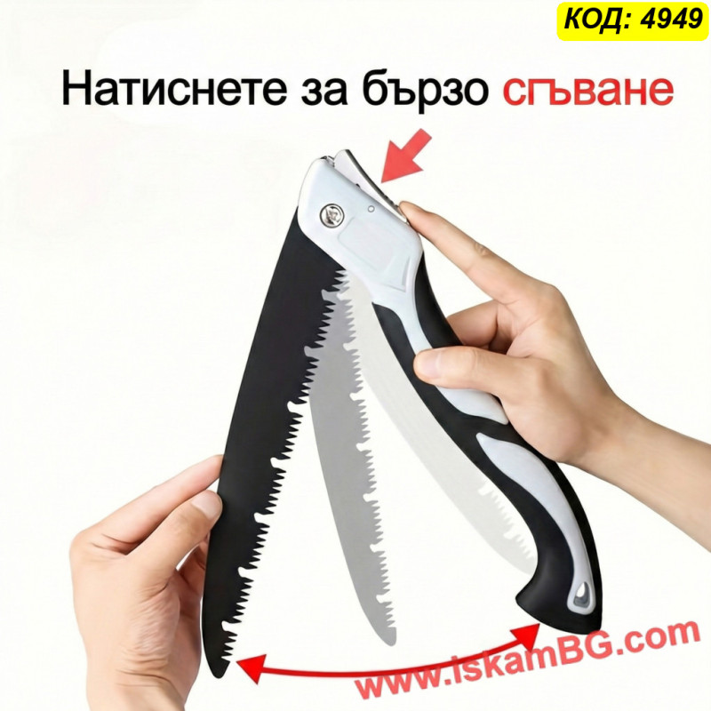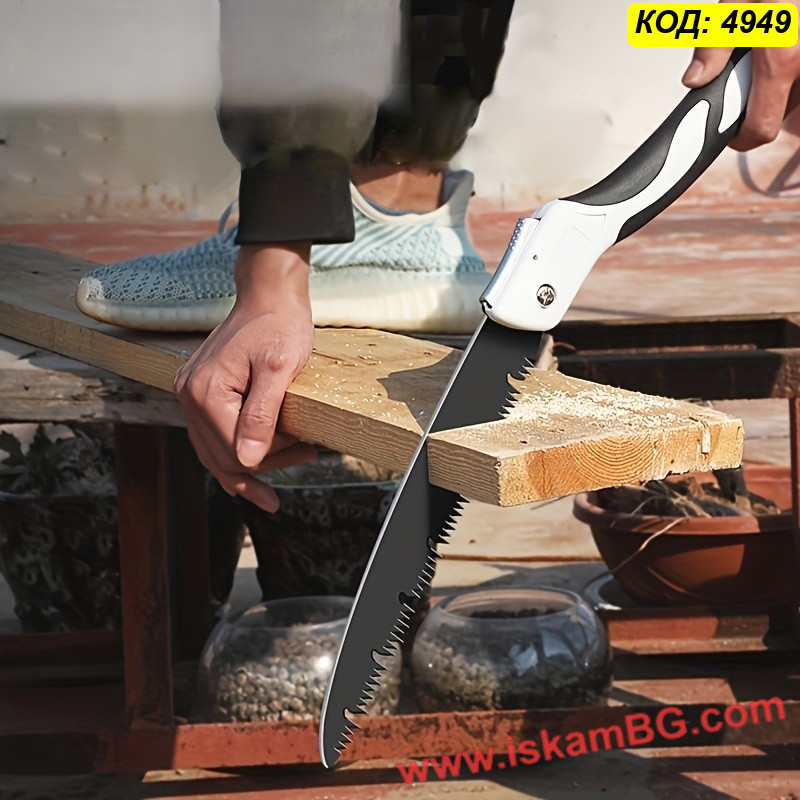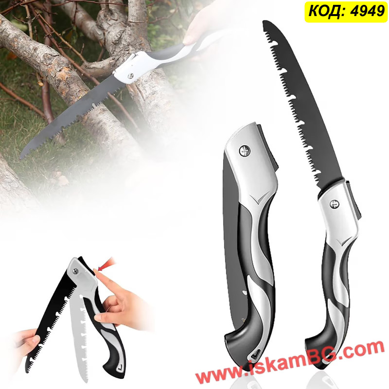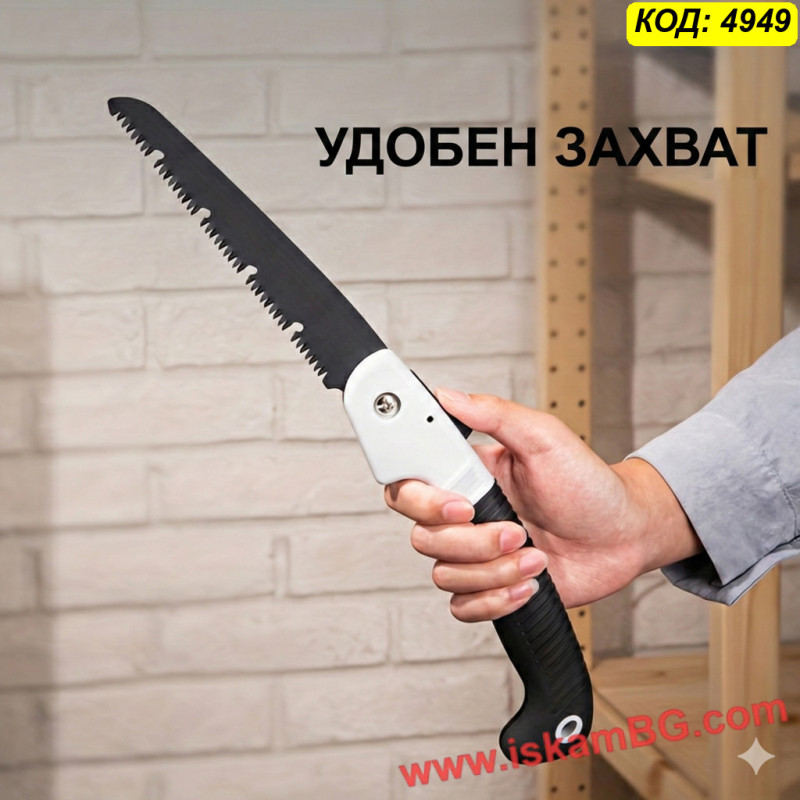 Този сгъваем трион за дърво е практичен избор, когато търсите по-компактен инструмент за рязане в градината, на къмпинг или при подрязване на дървета. Форматът му позволява острието да се прибере в дръжката, което улеснява пренасянето и съхранението, без да заема излишно място в раница или кутия с инструменти.