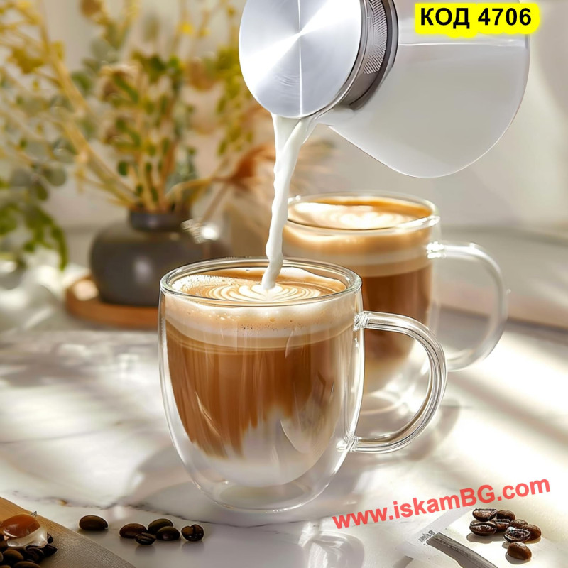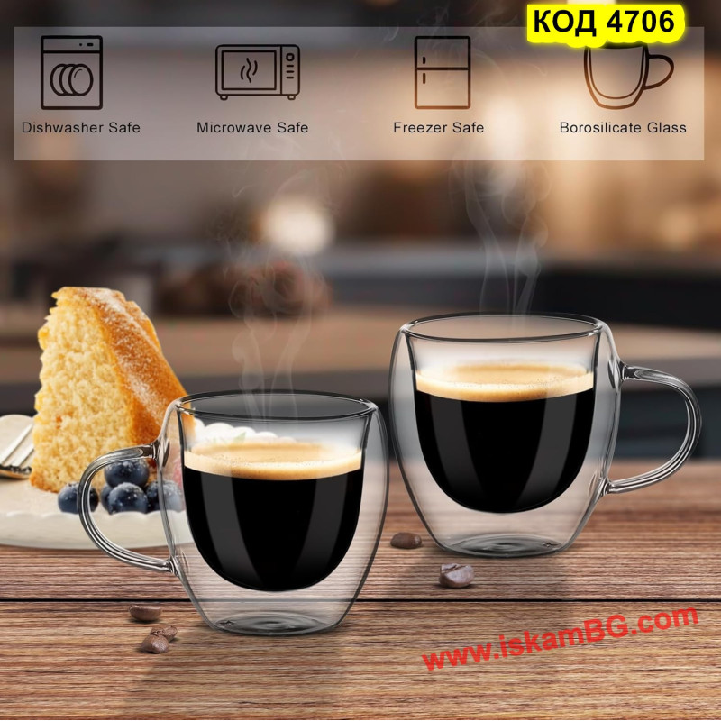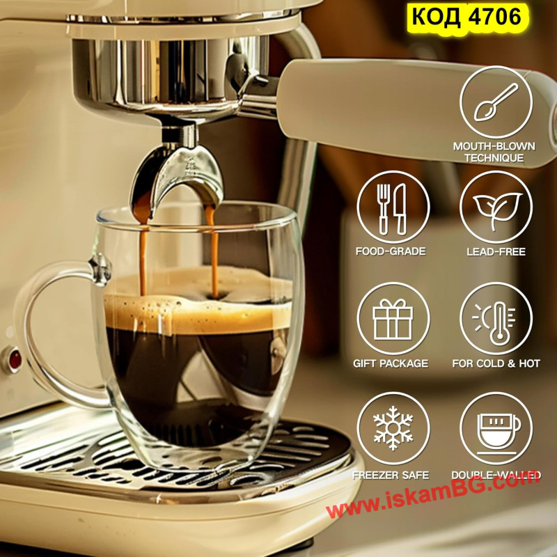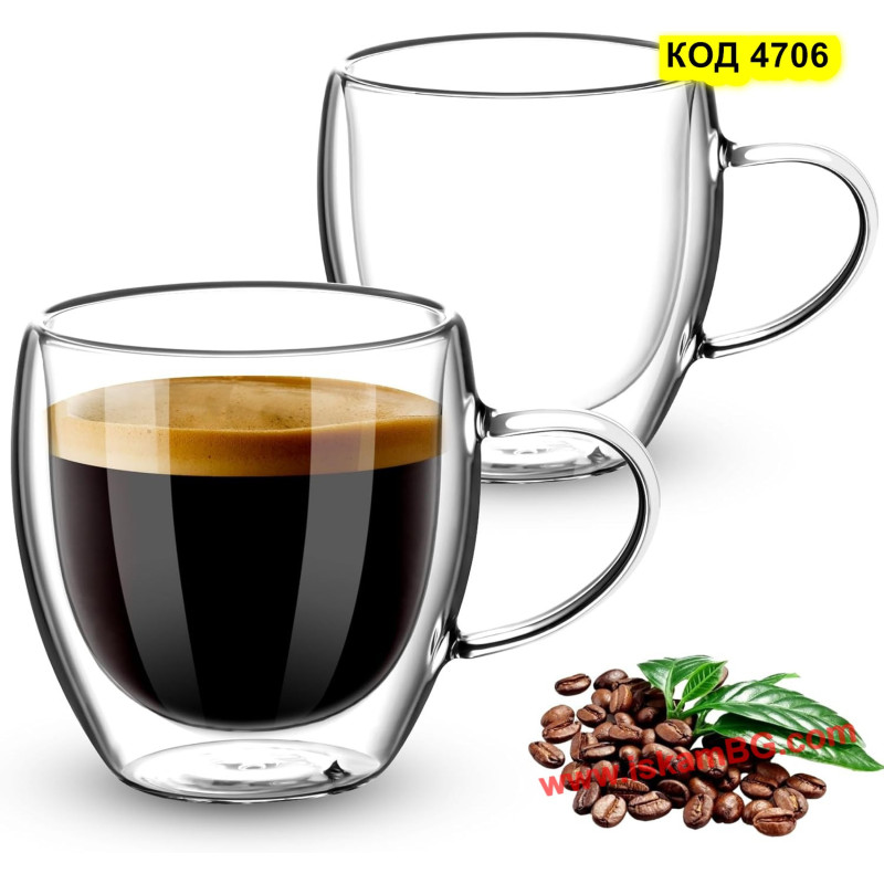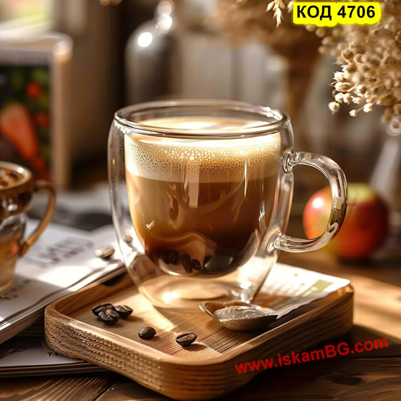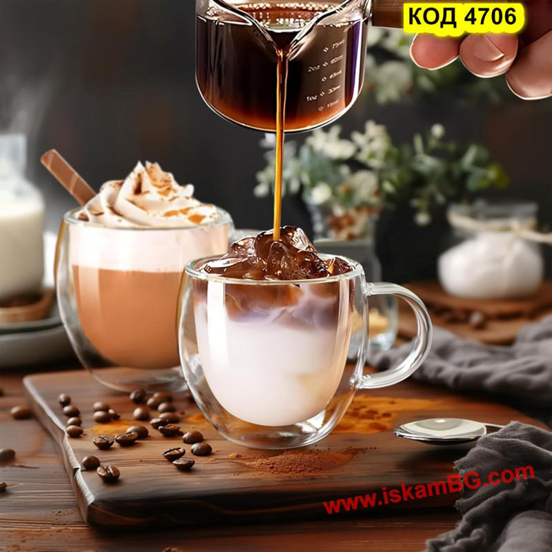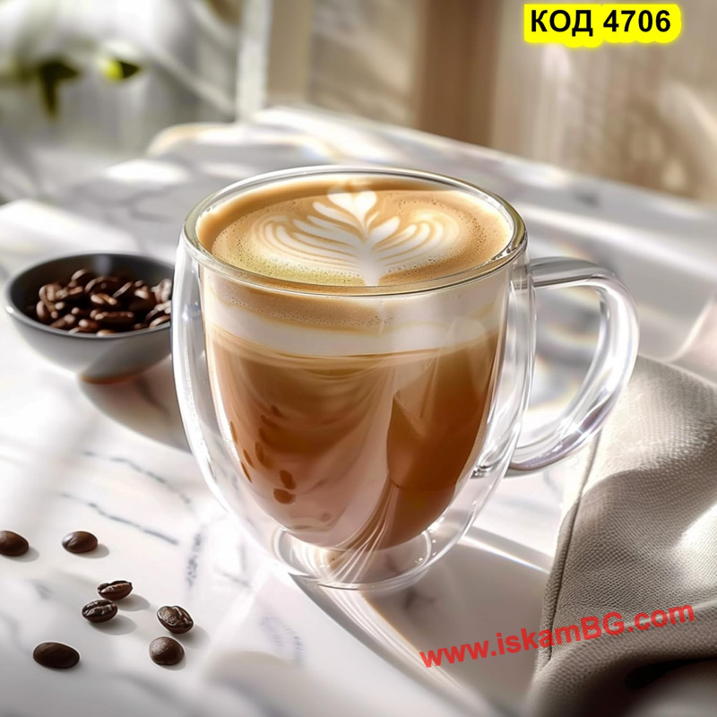 Стъклена чаша с двойно дъно за кафе и чай - 250 мл С ДРЪЖКА