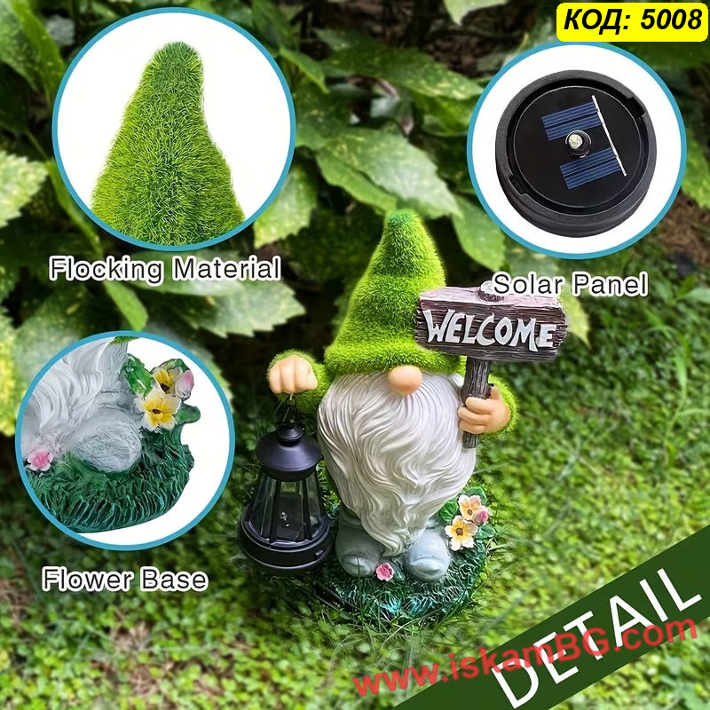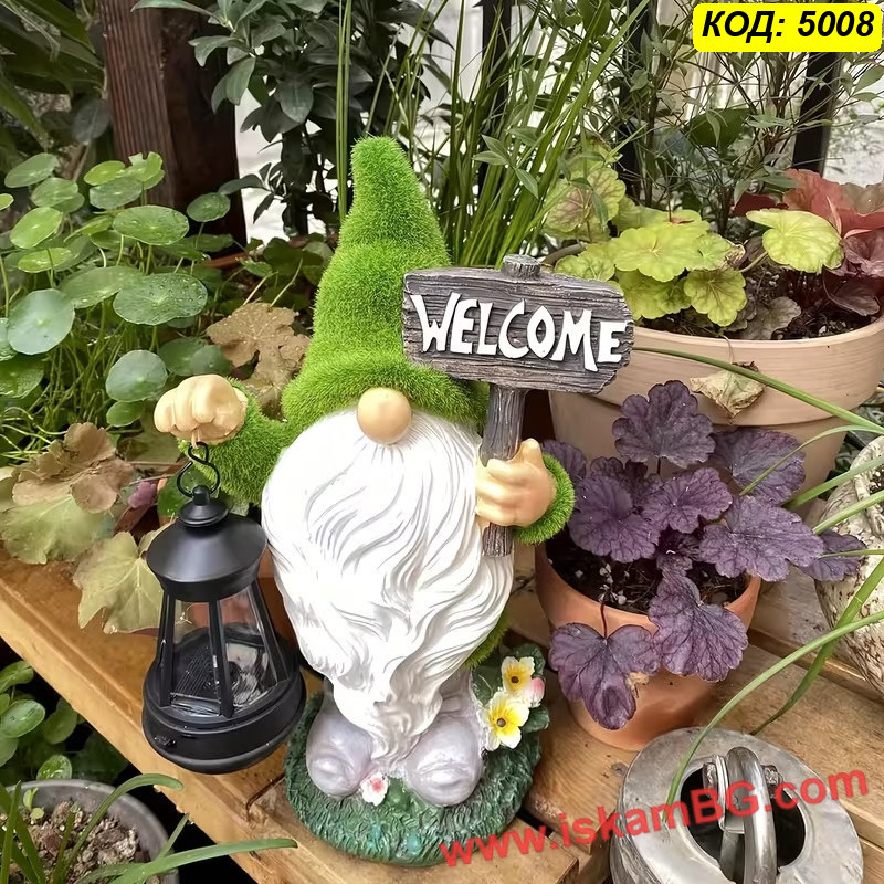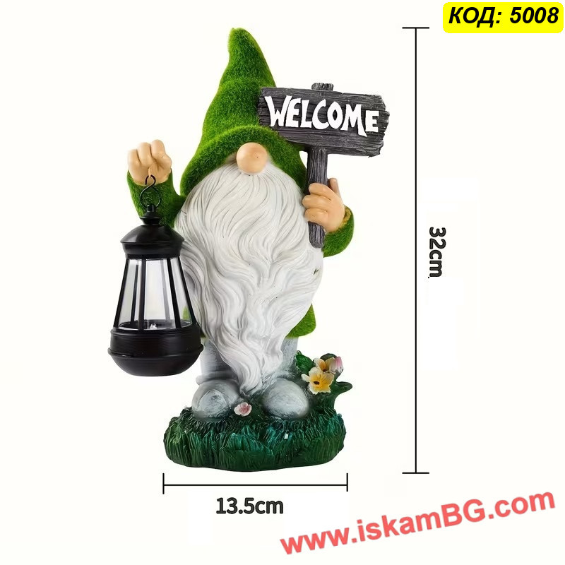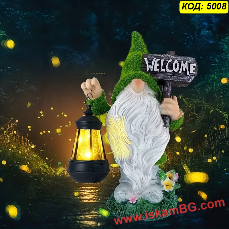 • Модел: гном (джудже) с фенер и табела „Welcome“