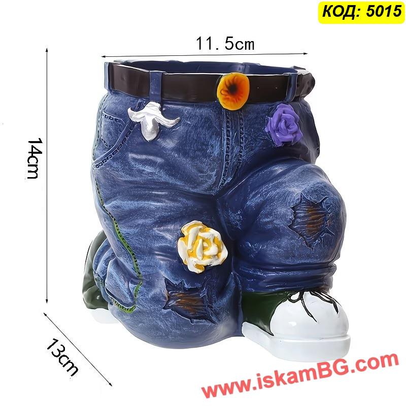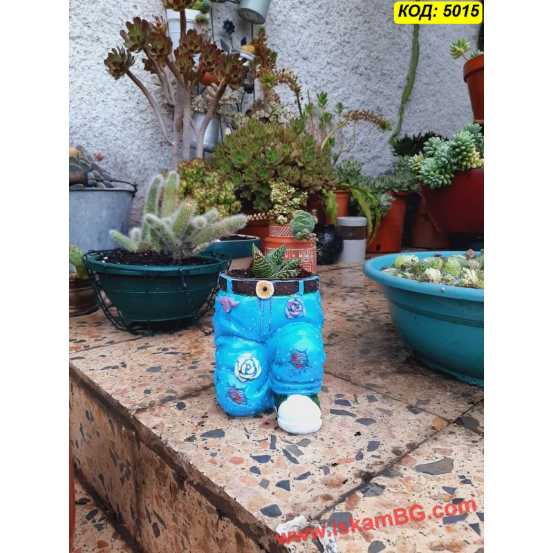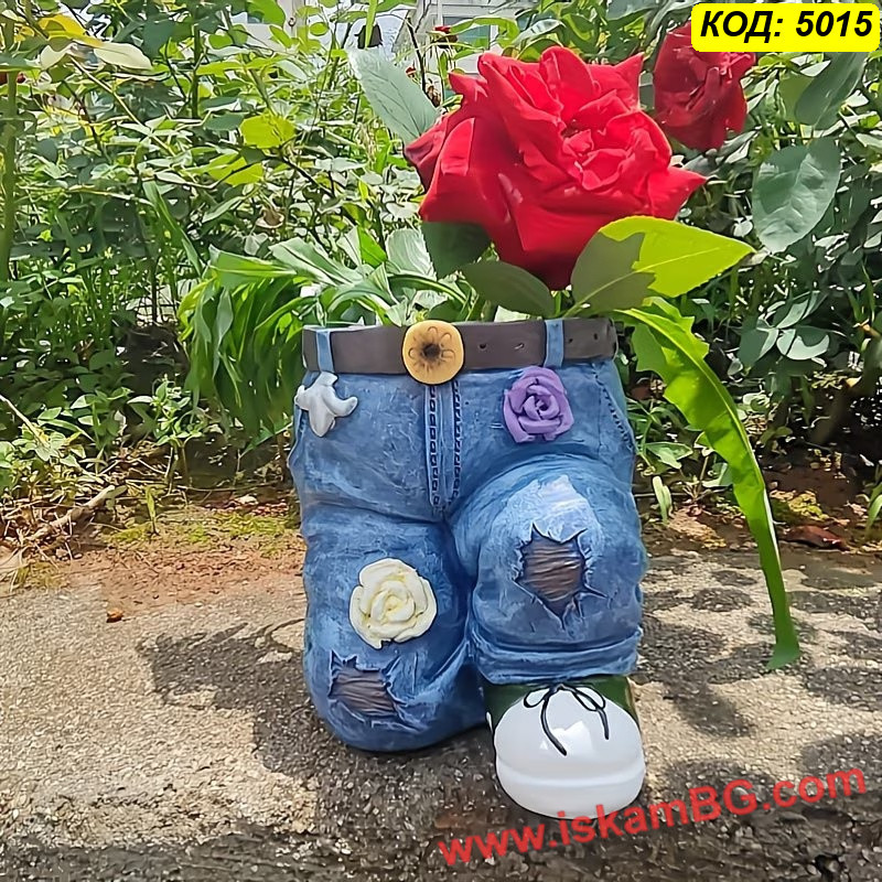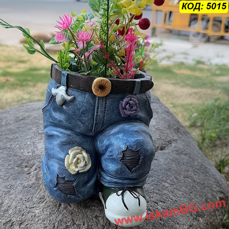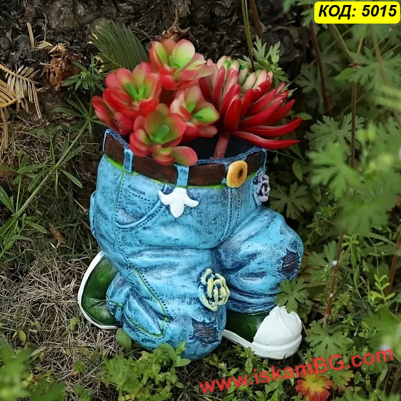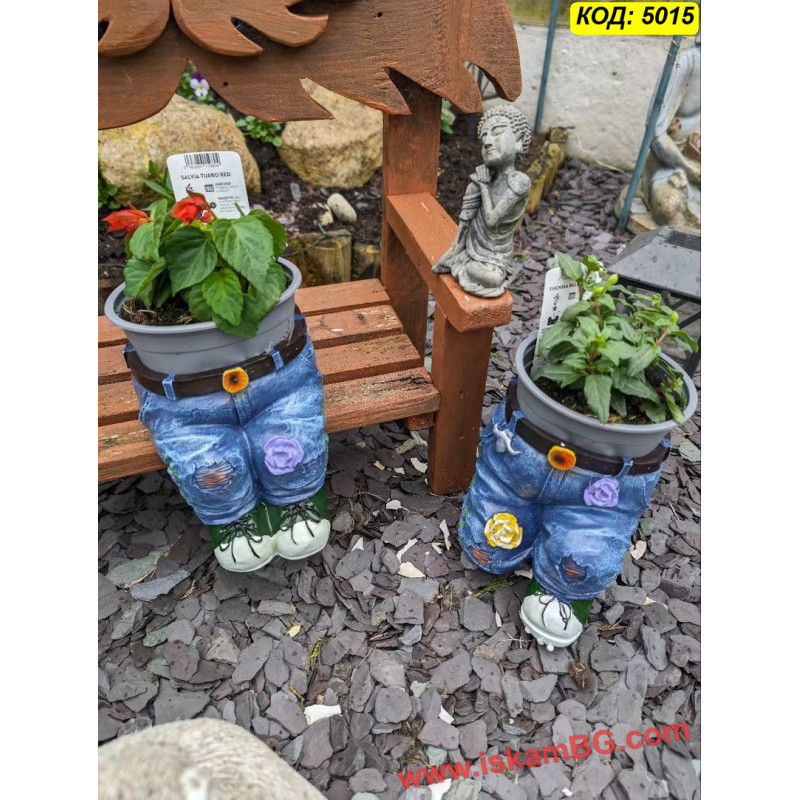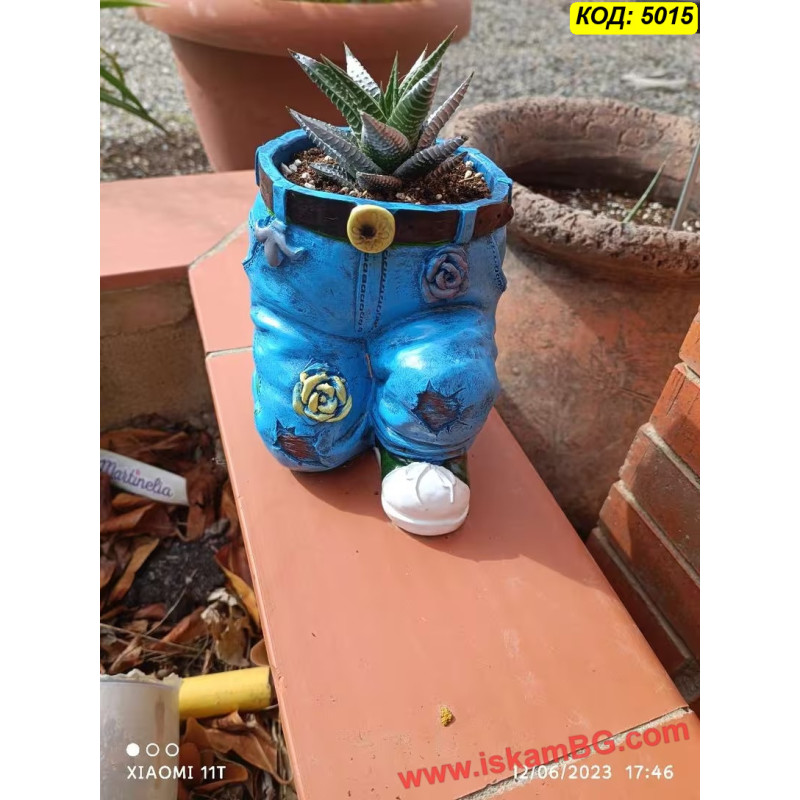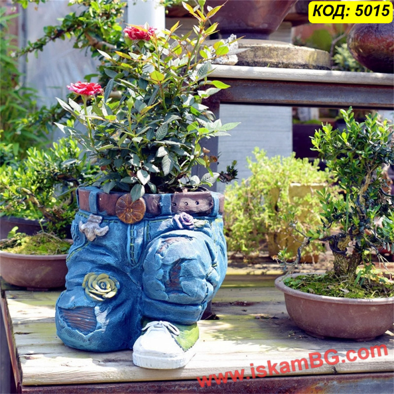 1 брой градинска саксия „Дънки с обувки“ – коленичещ модел