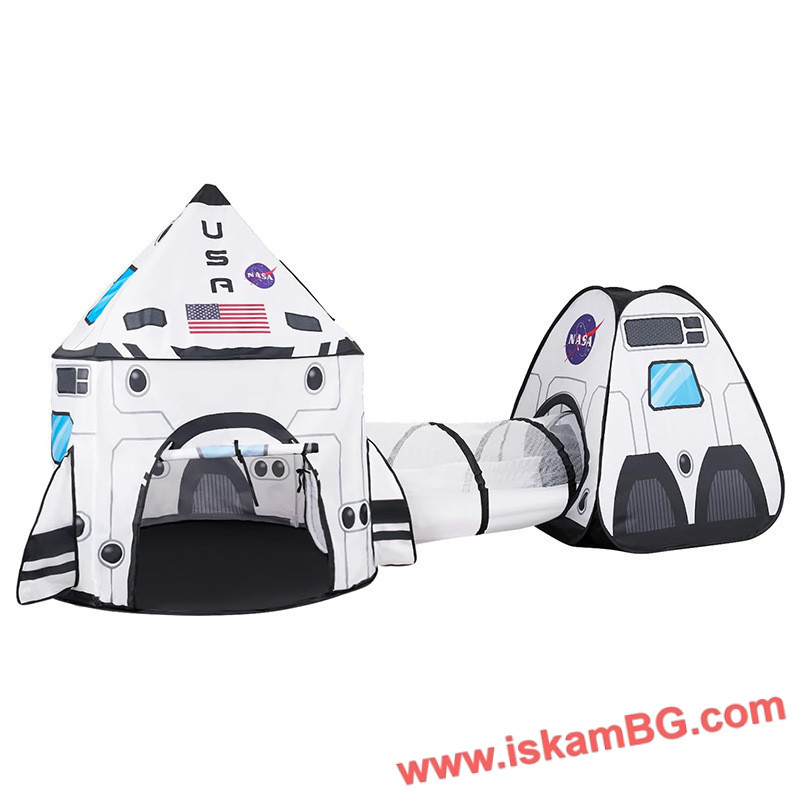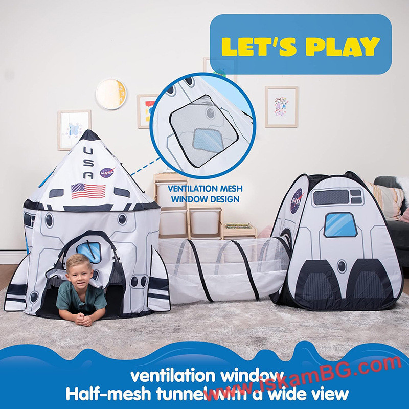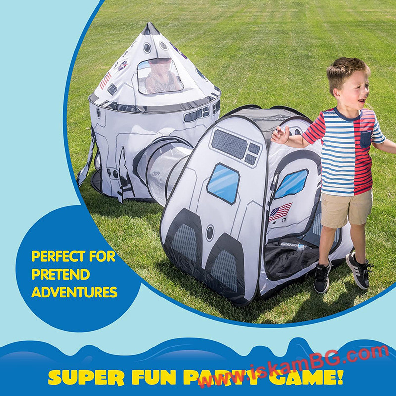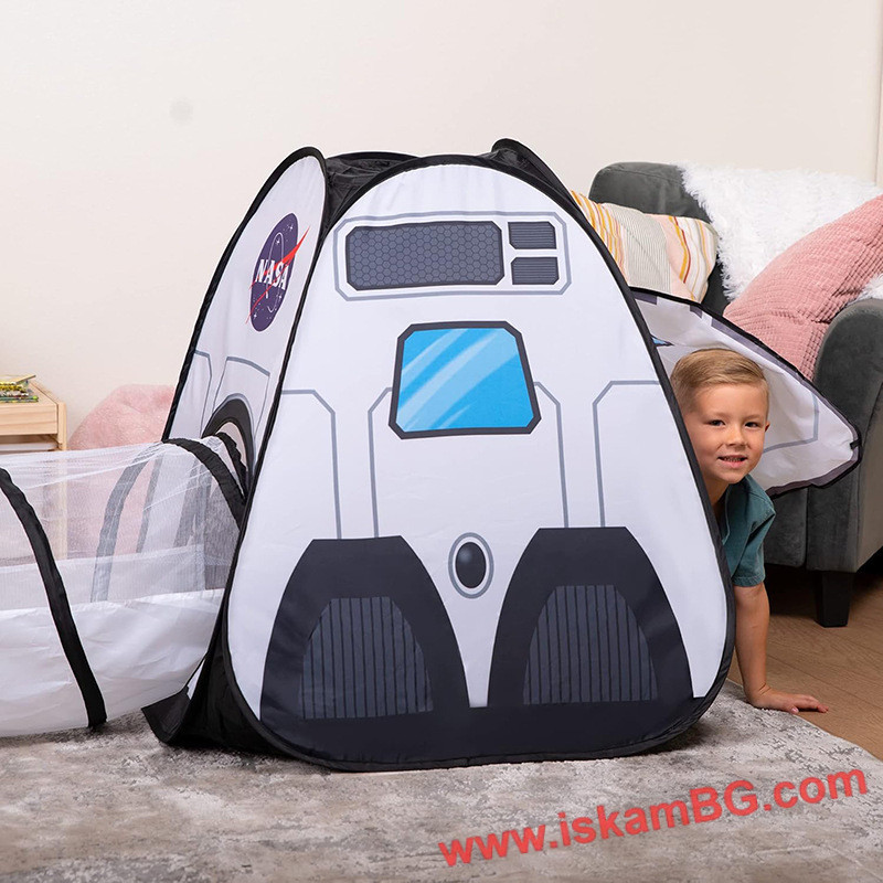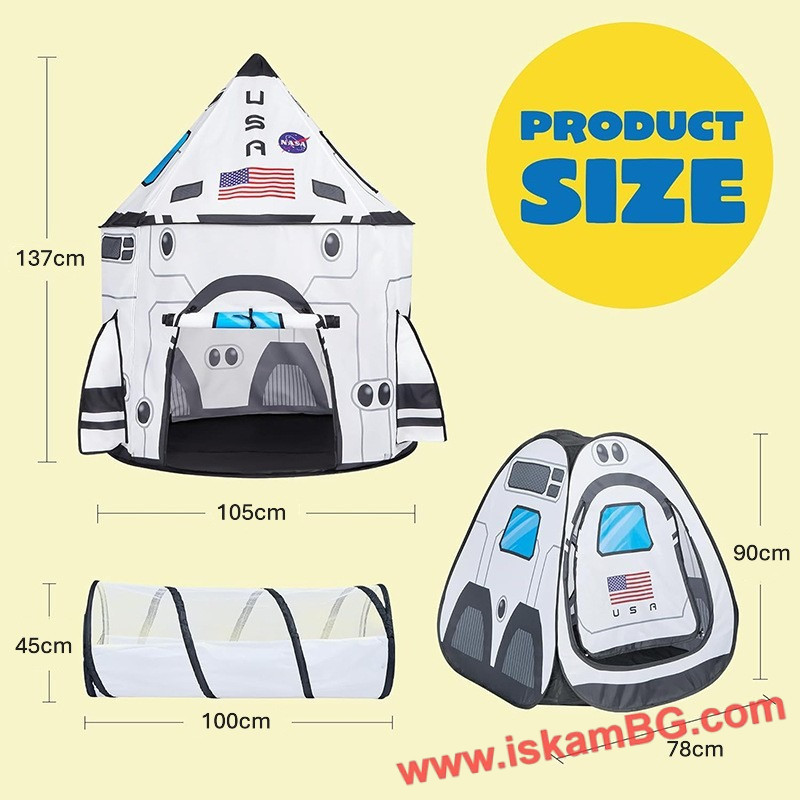 Подарете на детето си междугалактическо приключение, без да напускате дома! Нашата pop-up палатка "Космическа мисия" е идеалният център за игра, създаден да разпалва любопитството и да насърчава активната игра. Този 3-в-1 комплект позволява на малките изследователи да поемат контрол над своята ракета, да пропълзят през мрежестия тунел и да влязат в командната капсула.