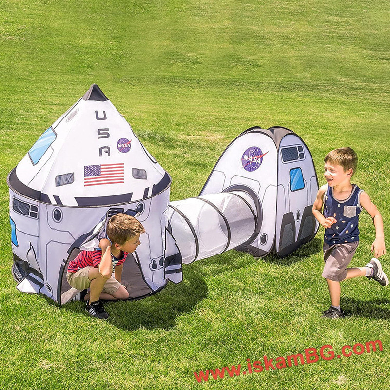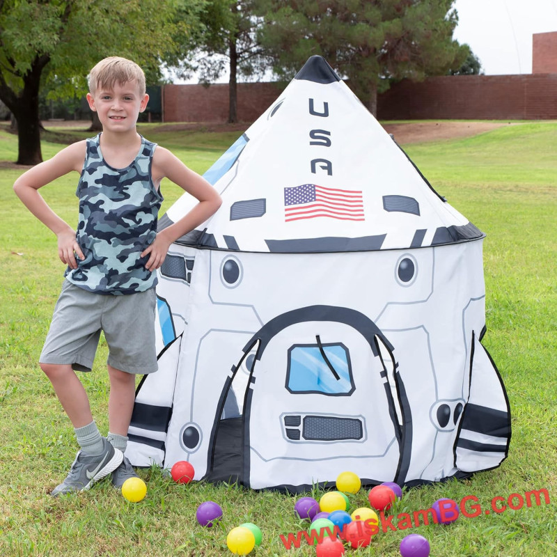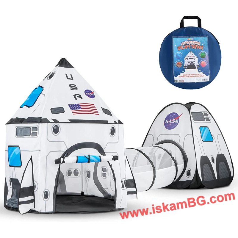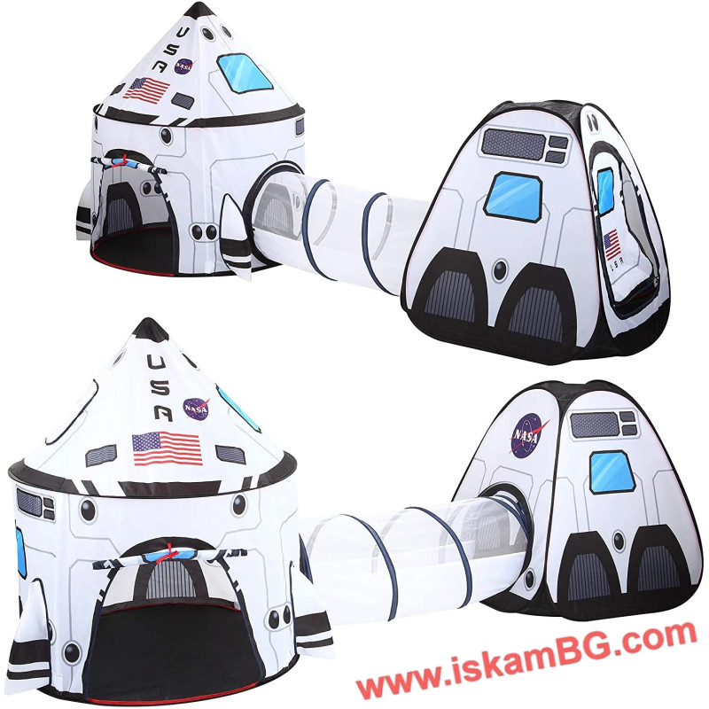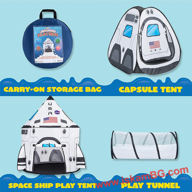 Подарете на детето си междугалактическо приключение, без да напускате дома! Нашата pop-up палатка "Космическа мисия" е идеалният център за игра, създаден да разпалва любопитството и да насърчава активната игра. Този 3-в-1 комплект позволява на малките изследователи да поемат контрол над своята ракета, да пропълзят през мрежестия тунел и да влязат в командната капсула.