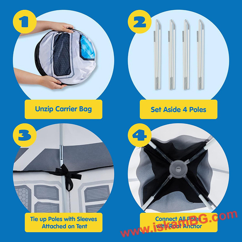 Тип: Детска палатка 3 в 1, Pop-up (саморазгъваща се)