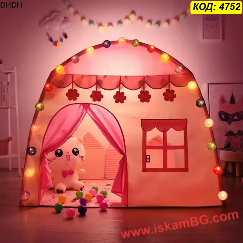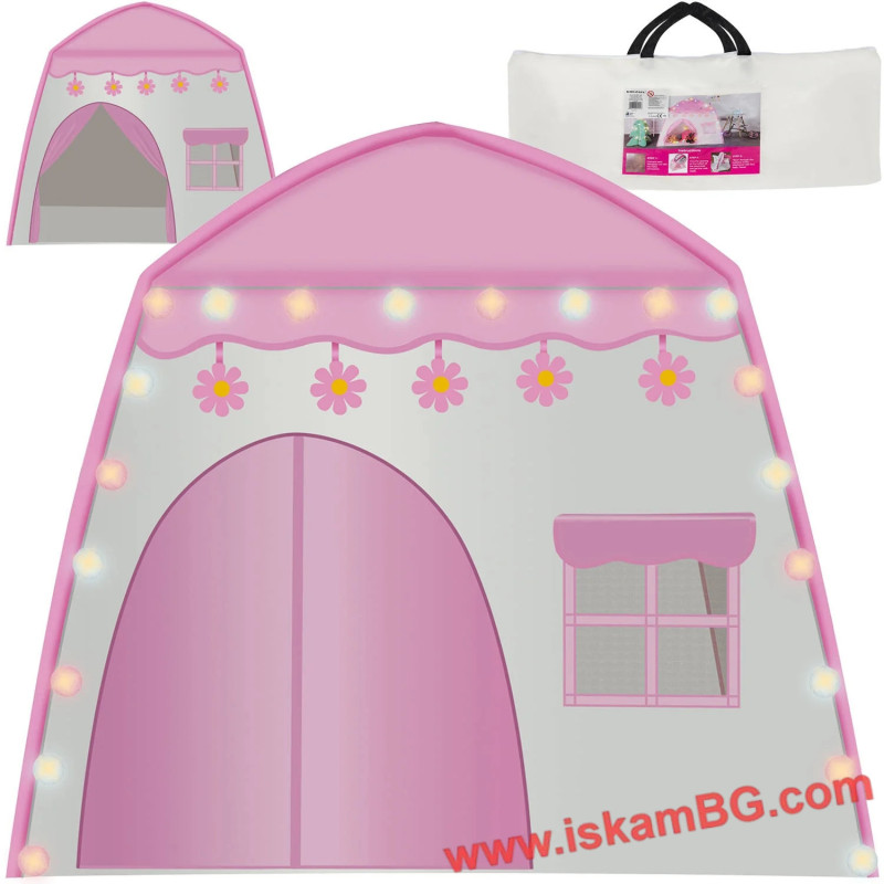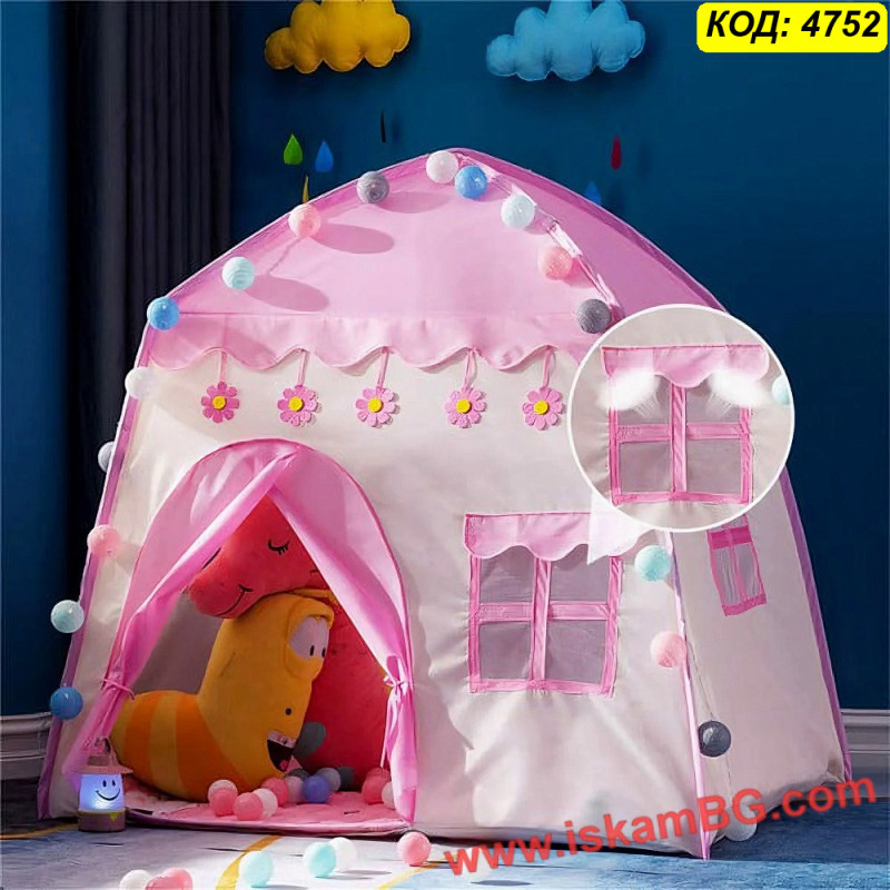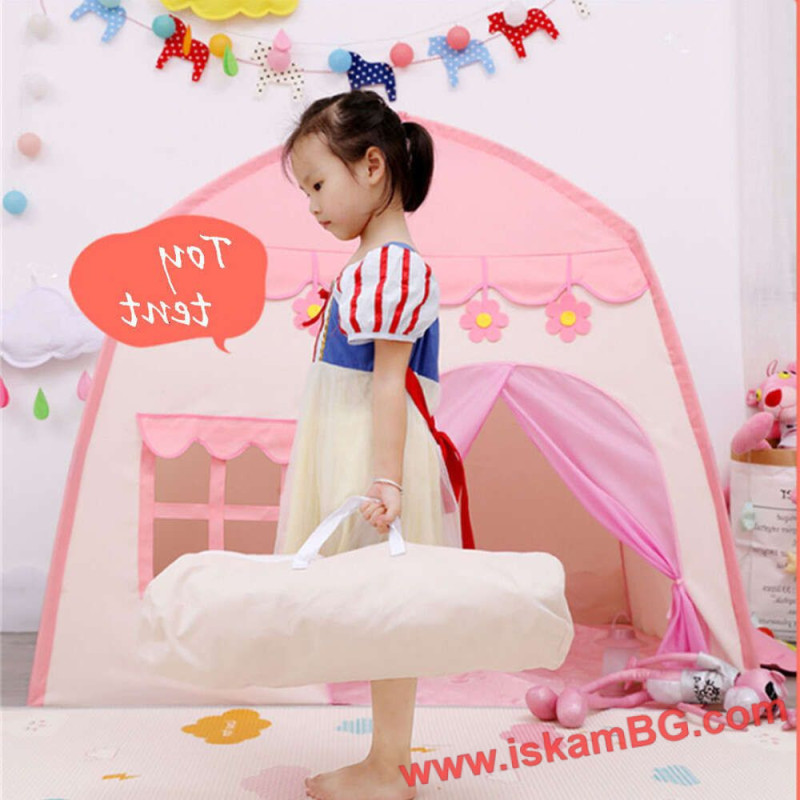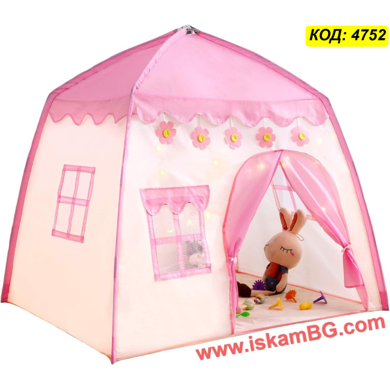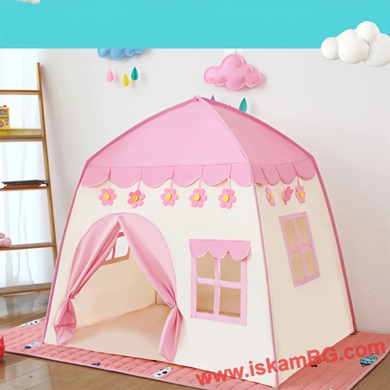 Превърнете детската стая във вълшебно кралство с тази очарователна розова палатка. Създадена като истински "Замък за принцеси", тя е перфектното лично пространство, където вашето дете може да развихри въображението си. Това е идеалният уютен кът за четене на приказки, за следобедна почивка или за весели игри с приятели. За разлика от pop-up моделите, тази палатка е по-просторна и стабилна, благодарение на лесната за сглобяване конструкция с рейки. Красивият дизайн с цветенца и прозорчета я прави не само страхотна играчка, а и чудесна декорация за стаята.