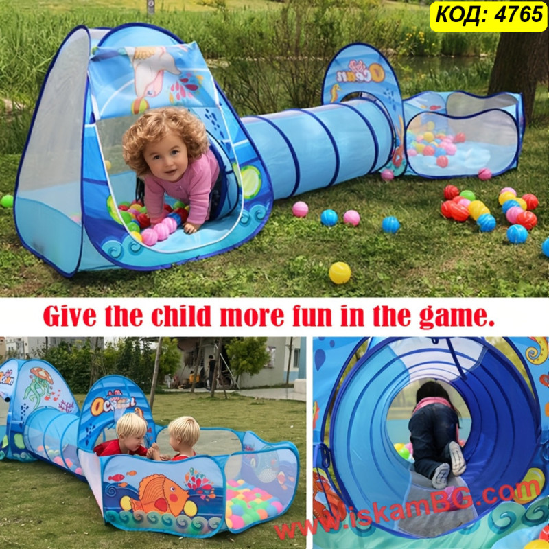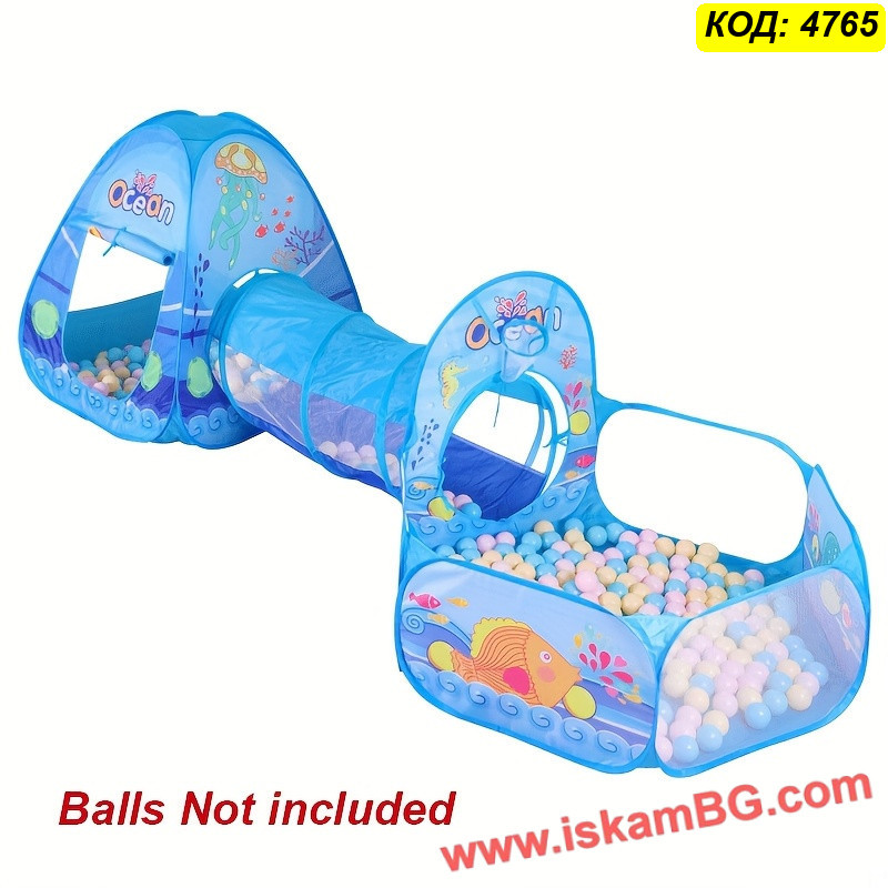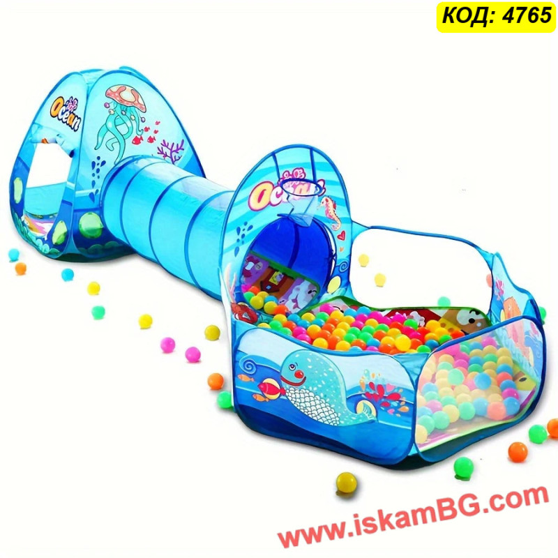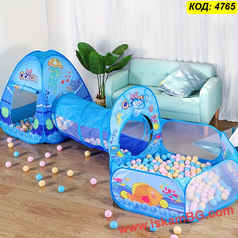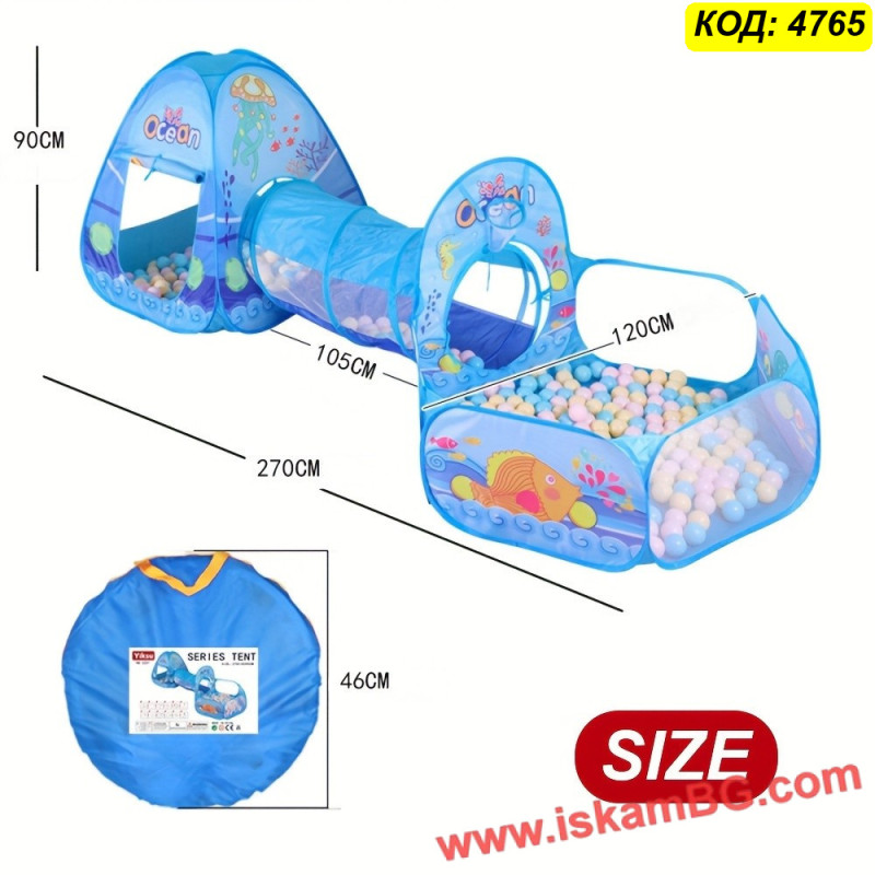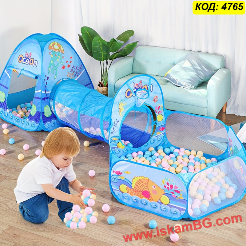 Тип: 3в1 Pop-Up комплект (Палатка + Тунел + Басейн за топки)