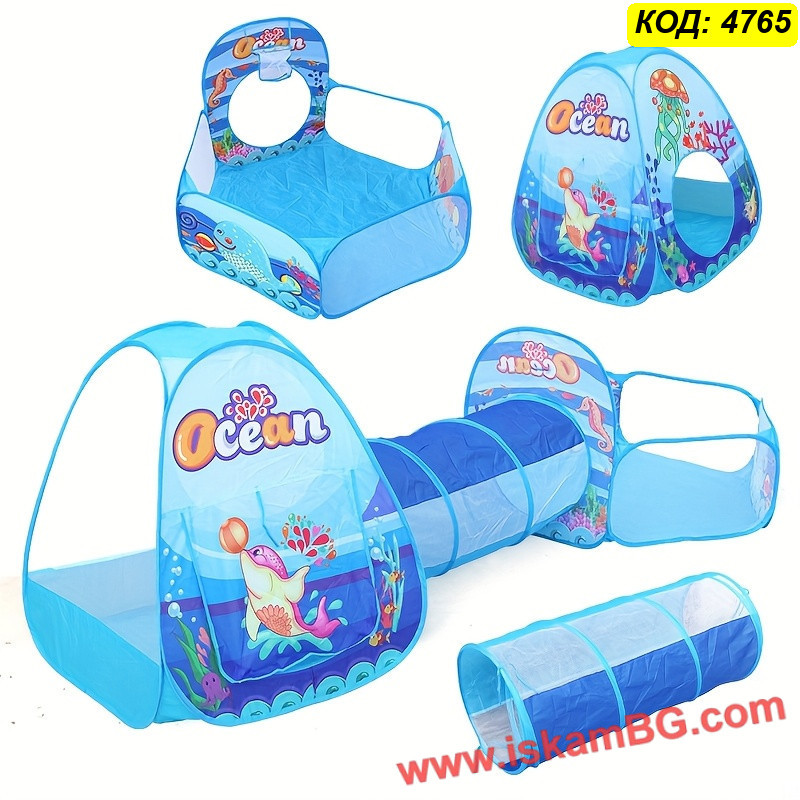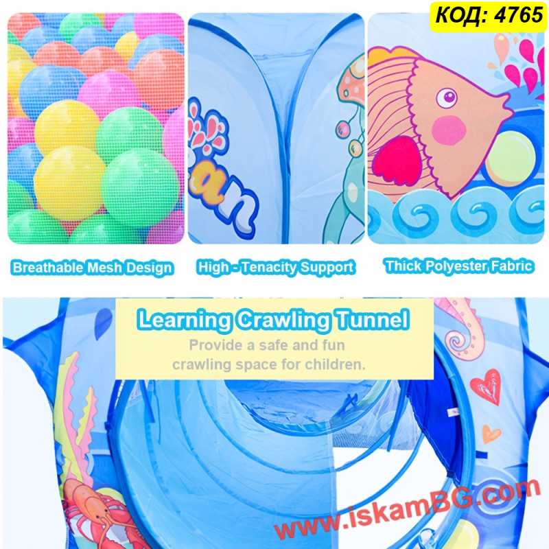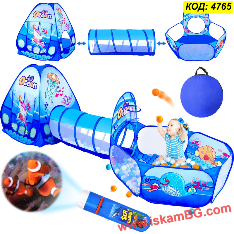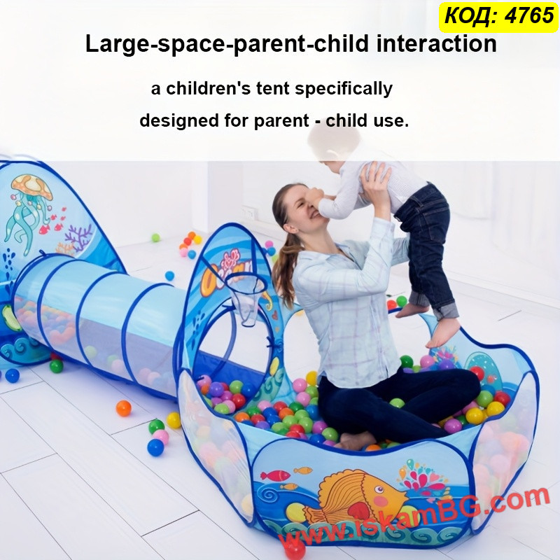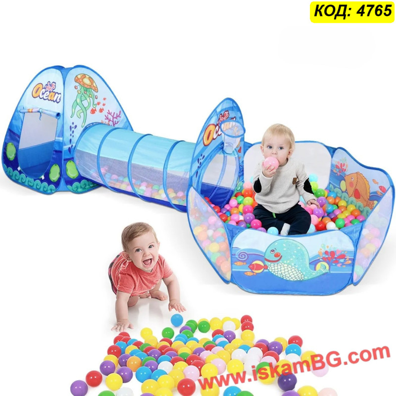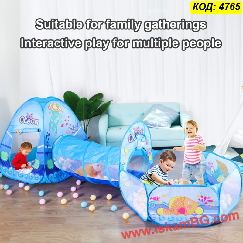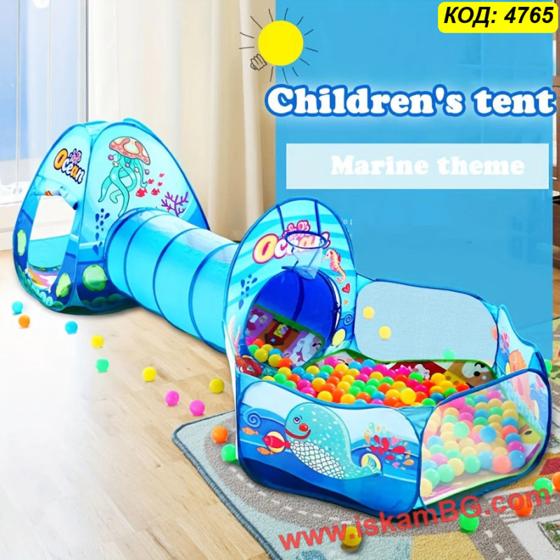 Тип: 3в1 Pop-Up комплект (Палатка + Тунел + Басейн за топки)