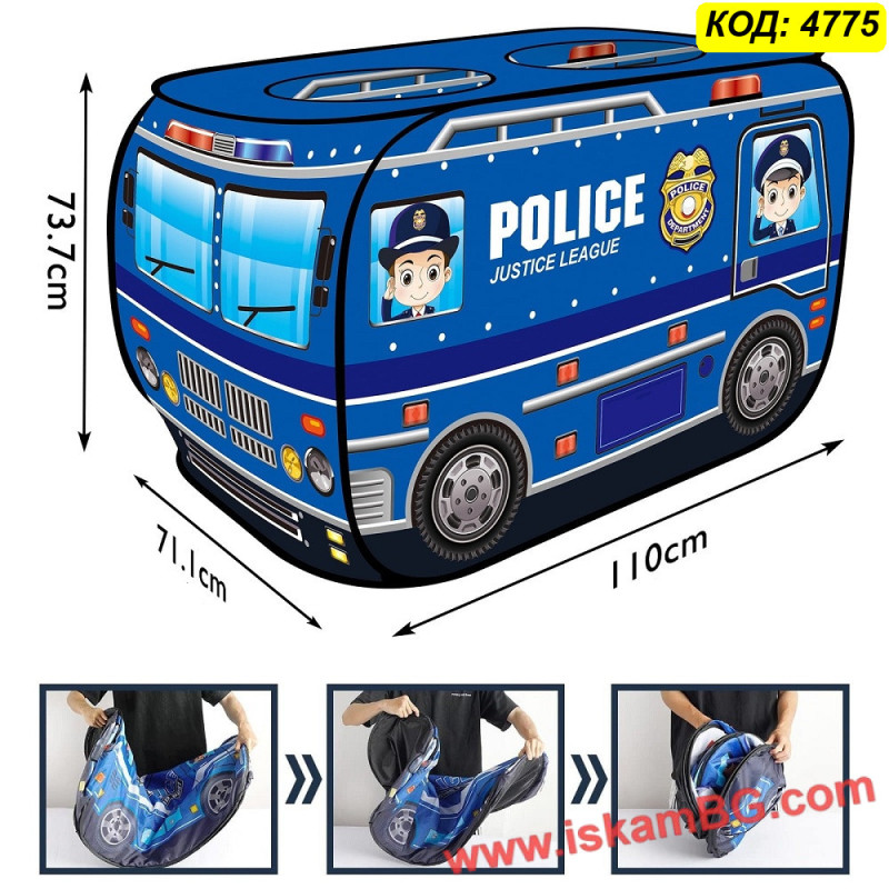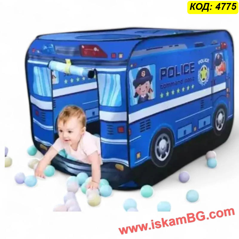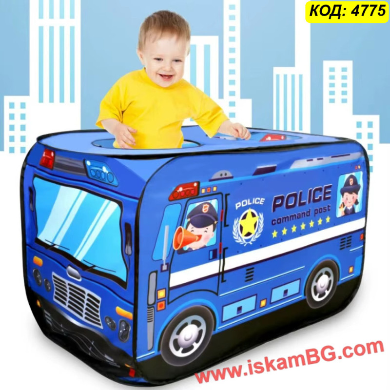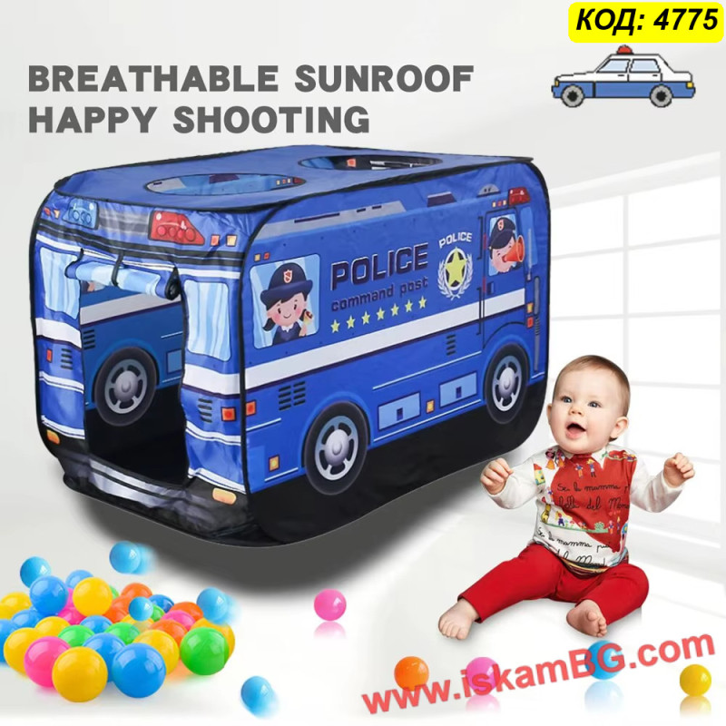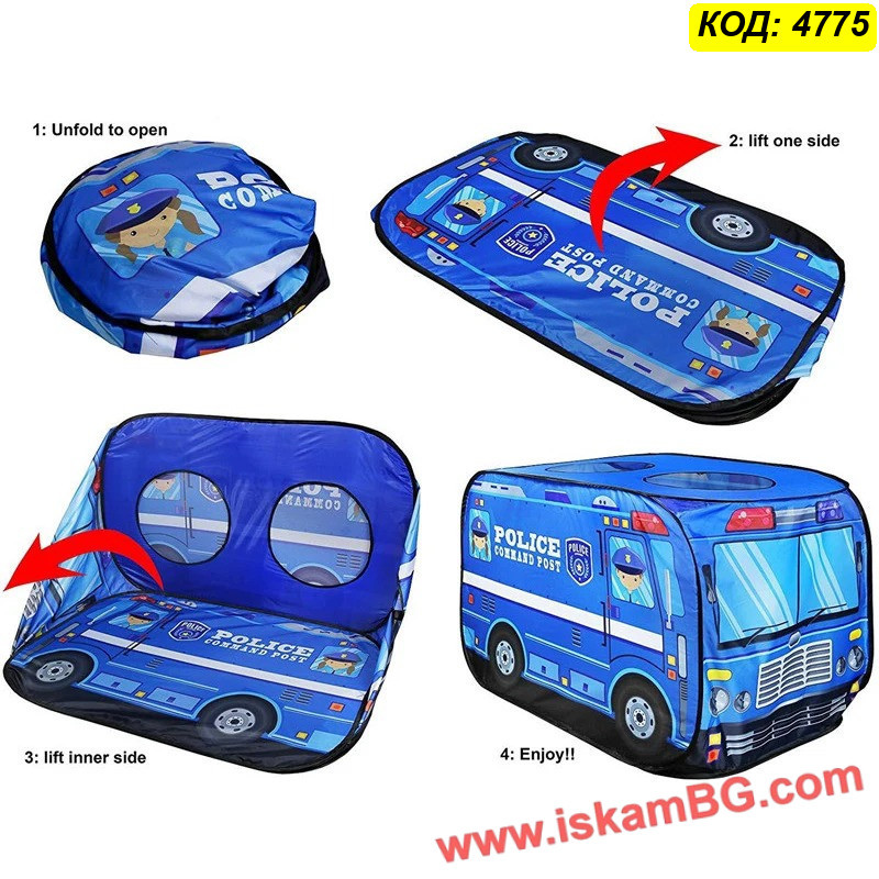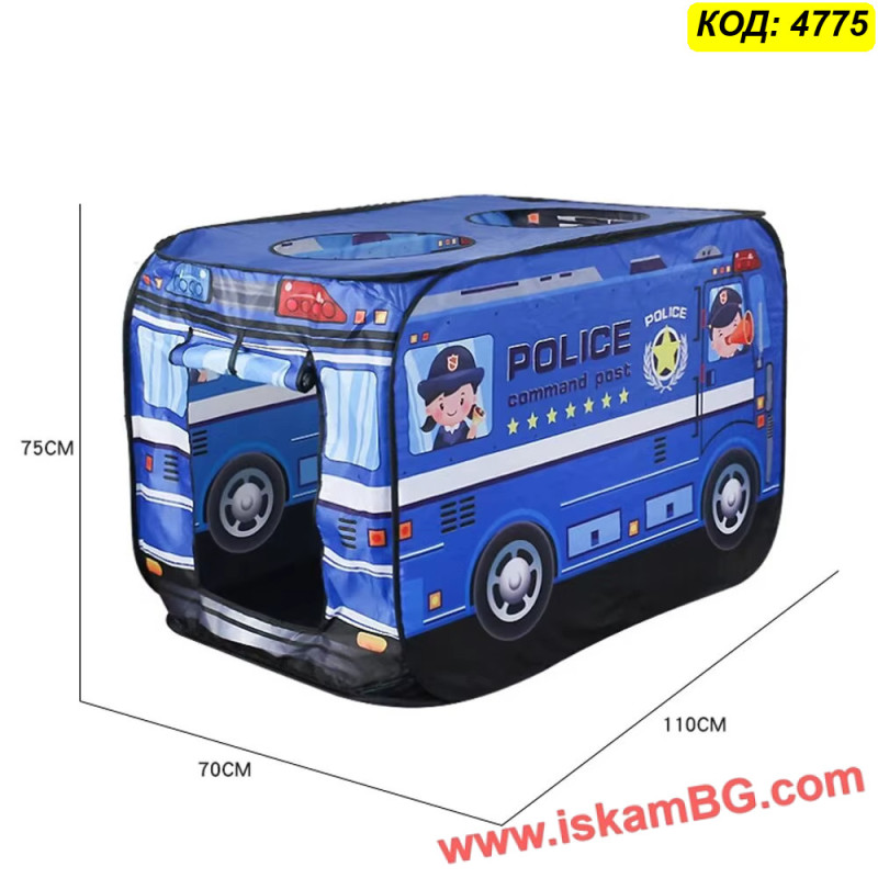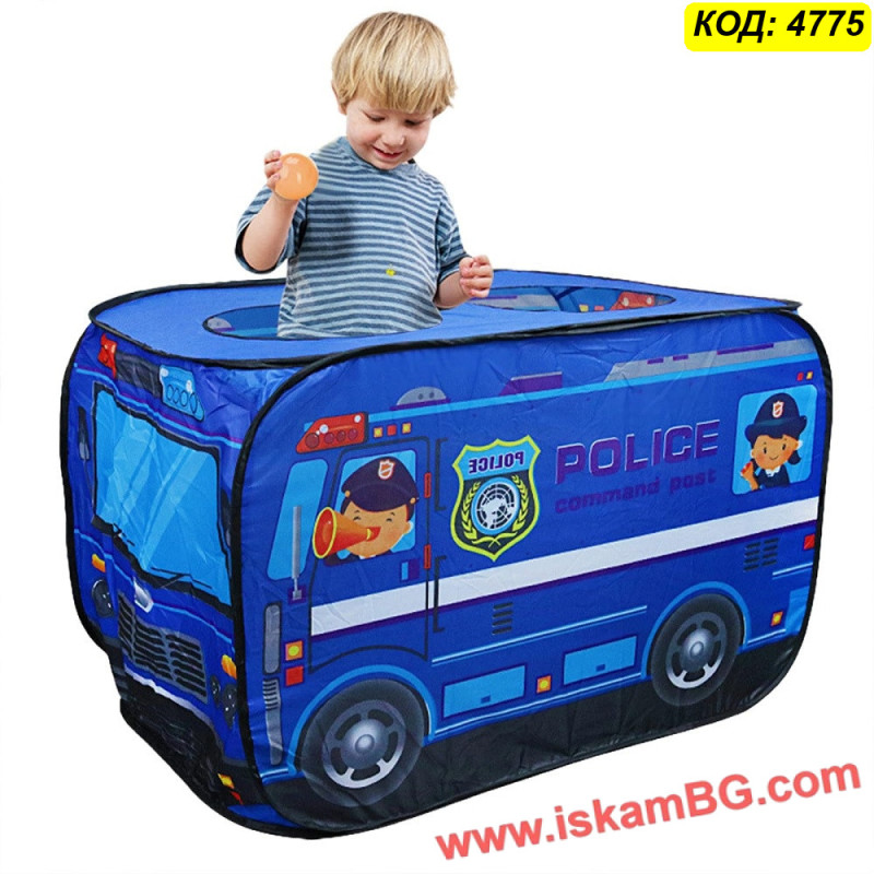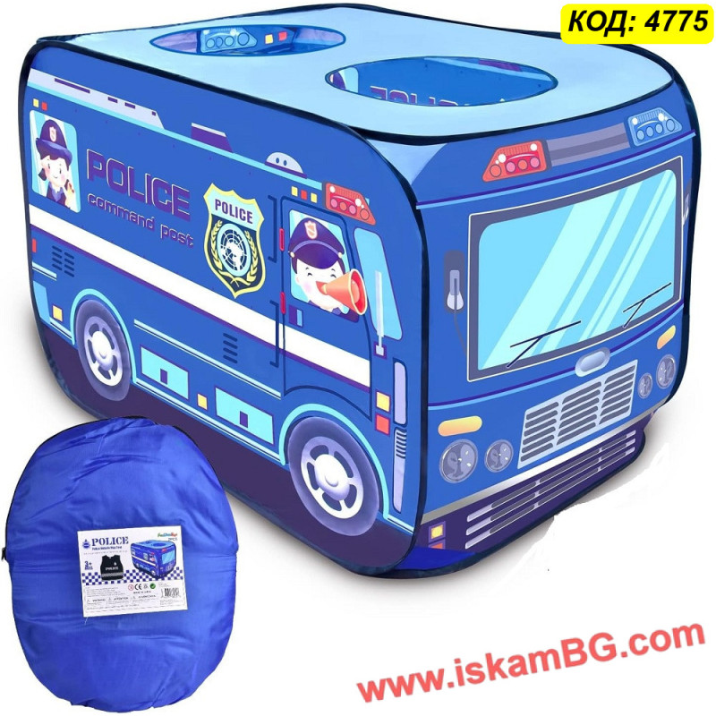 • 1 х Сгъваема детска палатка "Полицейски бус"