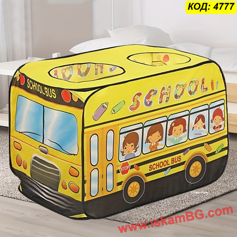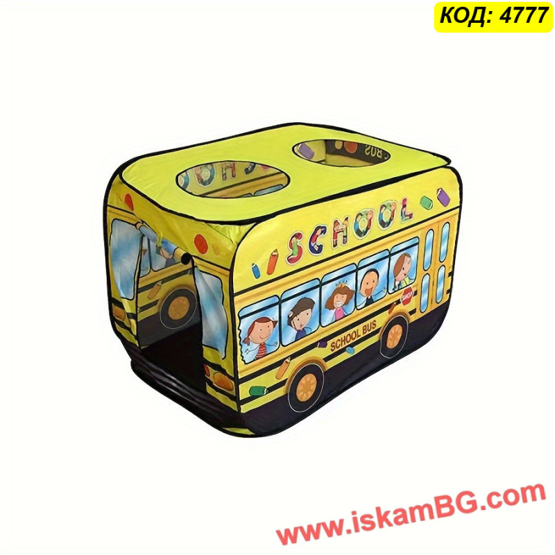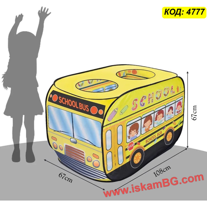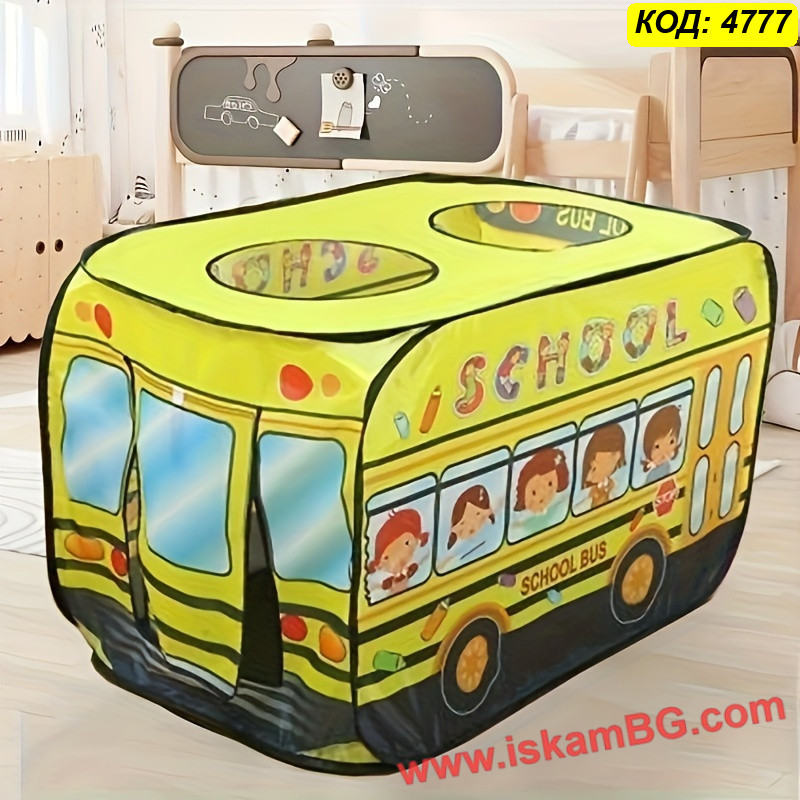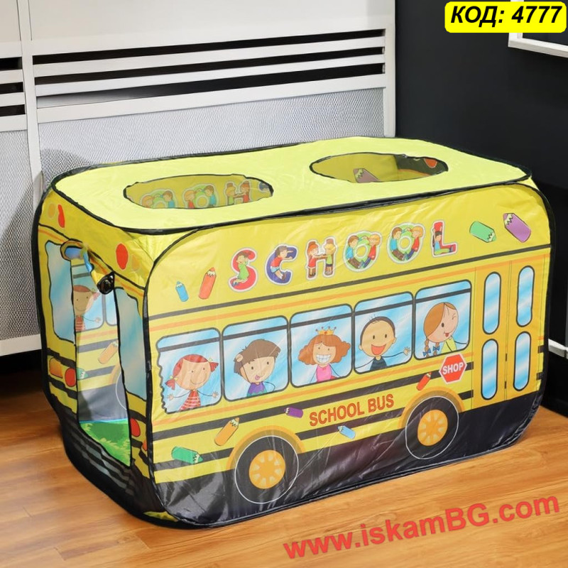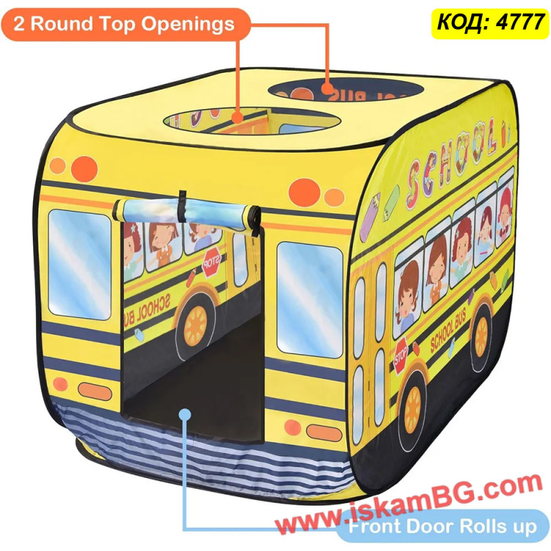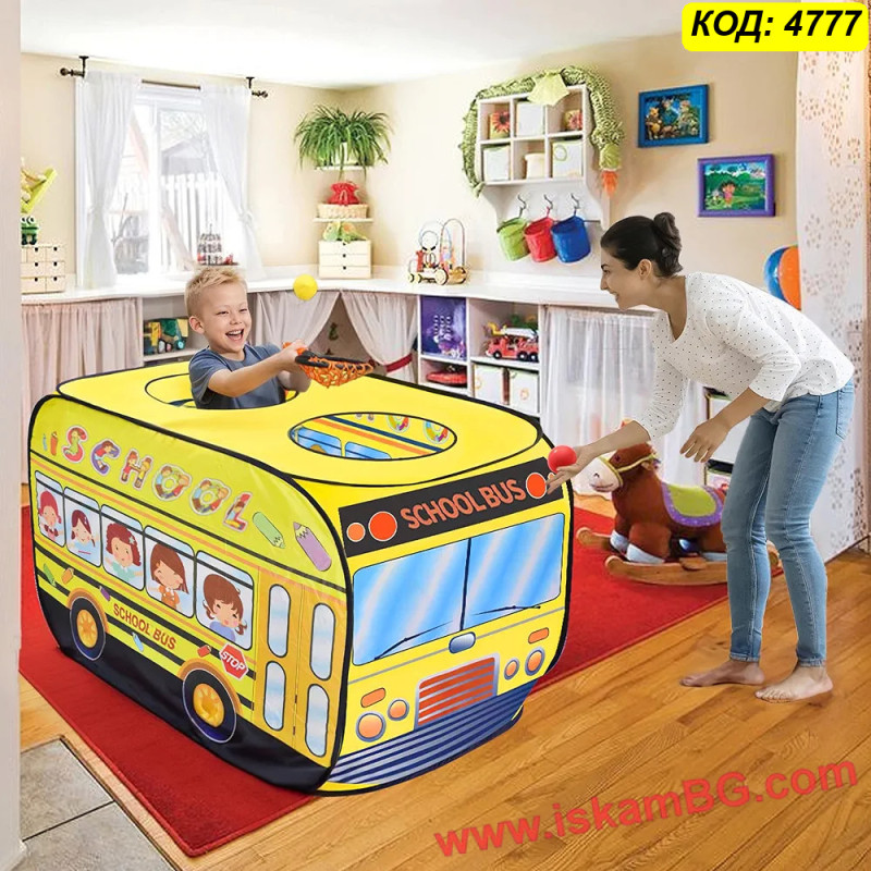 Превърнете стаята в спирка на приключенията с тази детска палатка "Училищен Автобус" ! Със своя светкавичен pop-up дизайн, тя е готова за игра за миг. Идеална за ролеви игри, с два отвора на покрива за още повече забавления.    Виж пълното описание