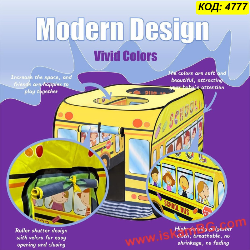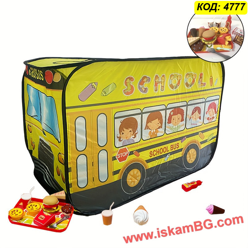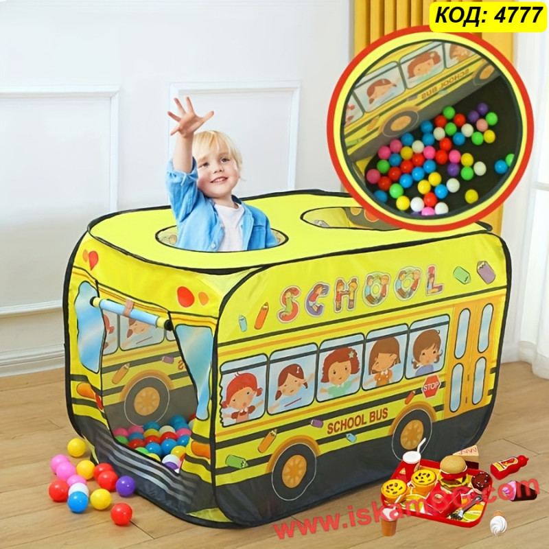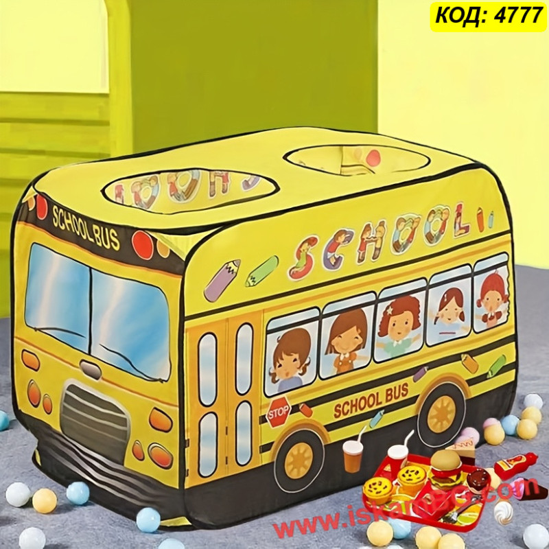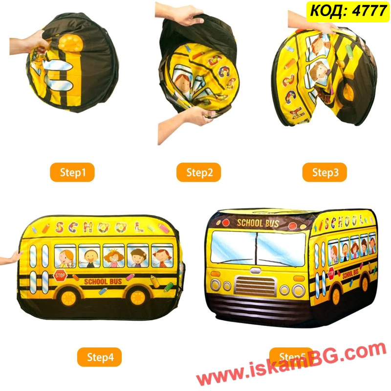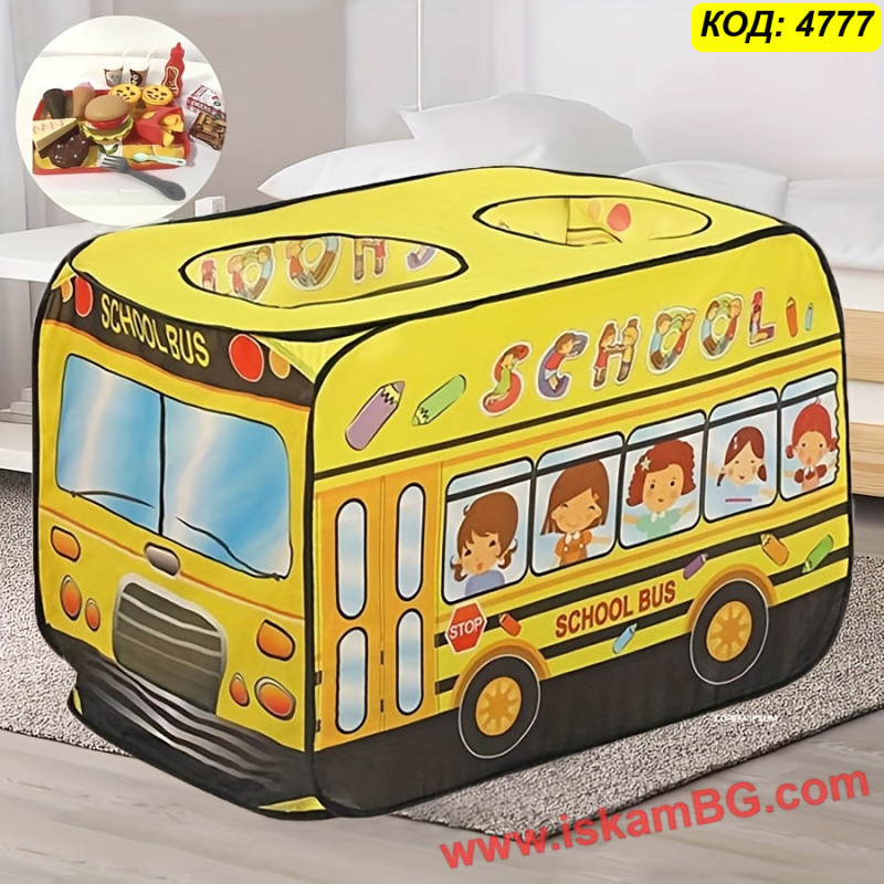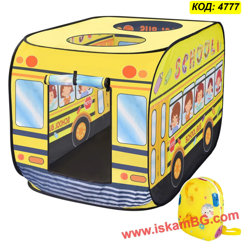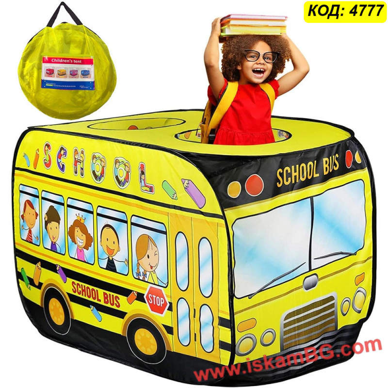 Превърнете стаята в спирка на приключенията с тази детска палатка "Училищен Автобус" ! Със своя светкавичен pop-up дизайн, тя е готова за игра за миг. Идеална за ролеви игри, с два отвора на покрива за още повече забавления.    Виж пълното описание