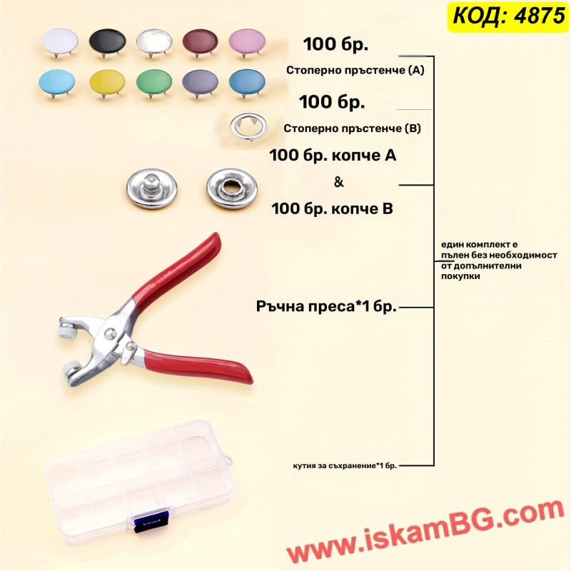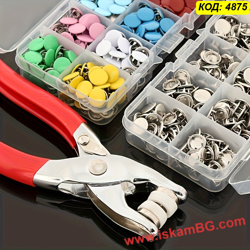 Забравете за досадното шиене на копчета или сложните ципове. Този комплект за поставяне на тик-так копчета е идеалното решение за всеки дом. Независимо дали сте родител, който иска да поправи скъсано копче на бебешко боди, или хоби творец, създаващ аксесоари, този сет ще ви спести време и пари.
