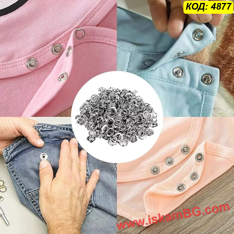 Брой копчета: 50 пълни комплекта (всяко копче се състои от 4 части)