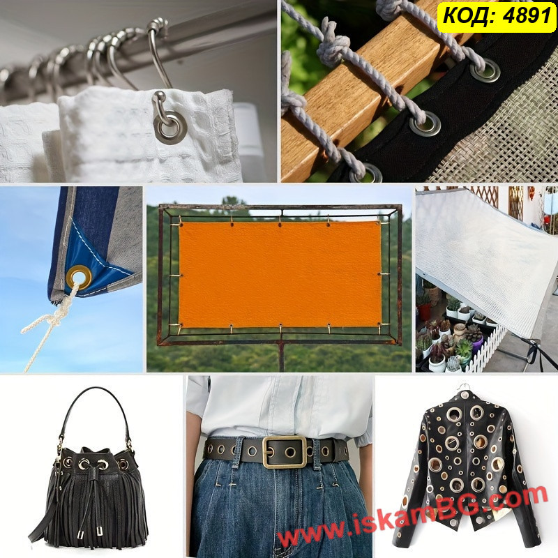 Професионален ремонтен комплект за дома и работилницата. Включва 100 броя сребристи метални капси с вътрешен диаметър 10 мм и всички необходими инструменти за лесния им монтаж. Перфектното решение за поправка на скъсани отвори на покривала, палатки, сенници, кожени изделия и завеси.