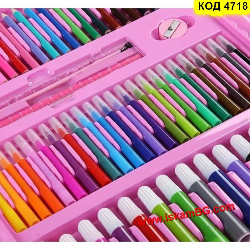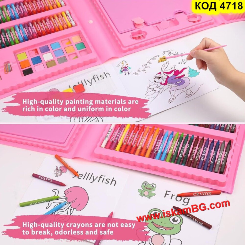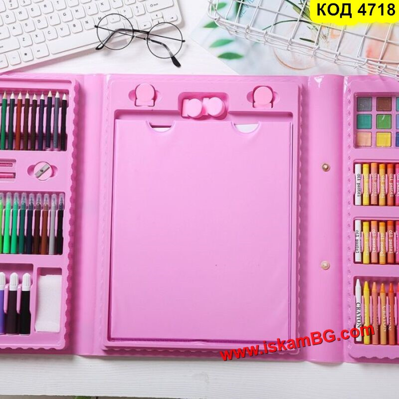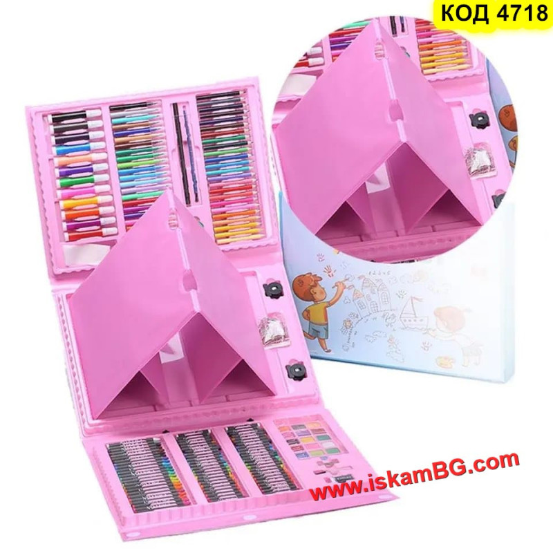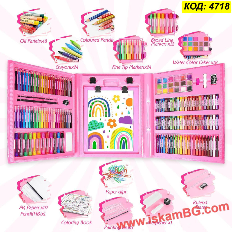 Голям детски комплект за рисуване 208 части в куфарче - Розов