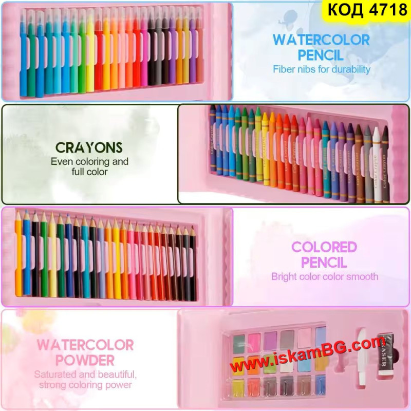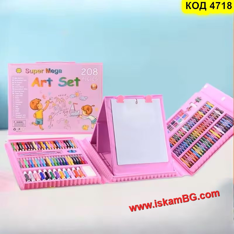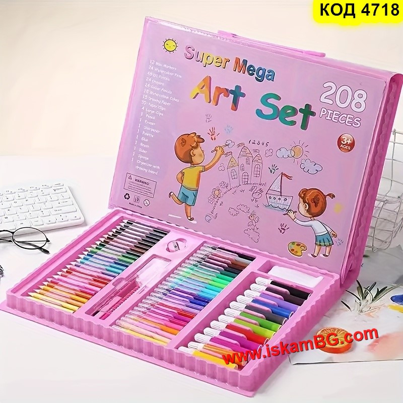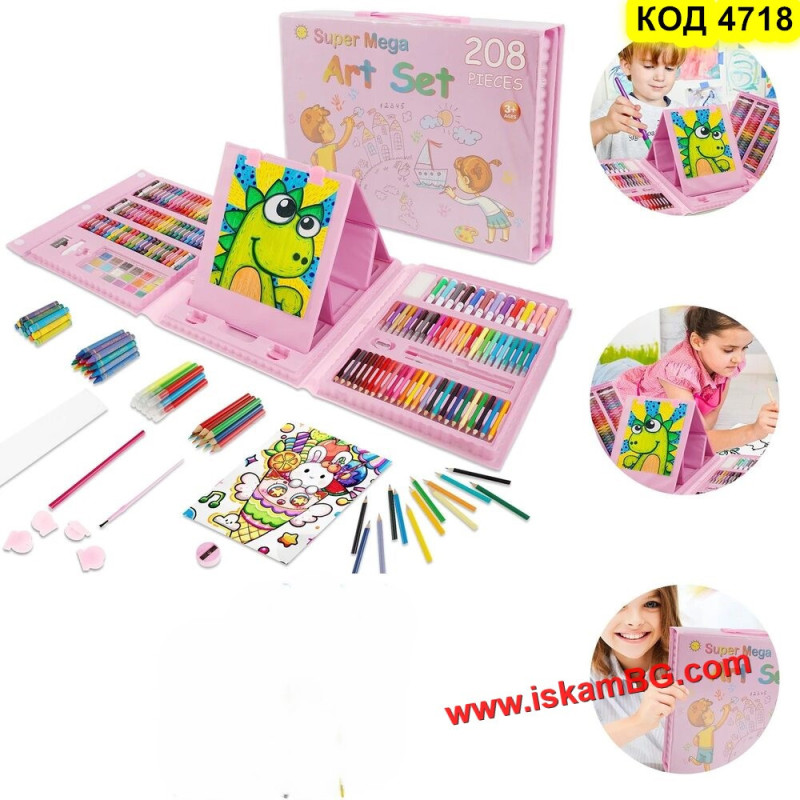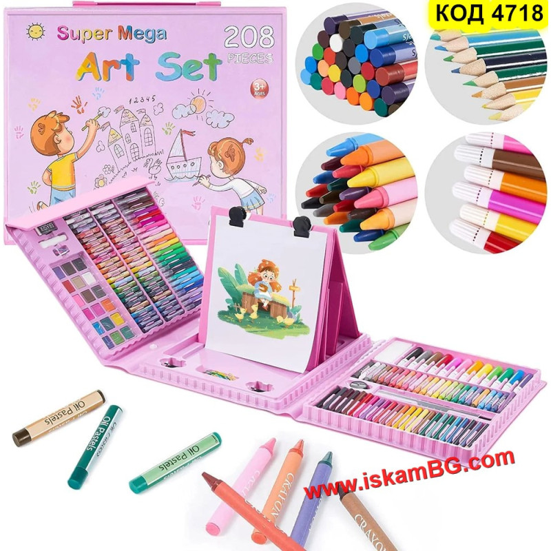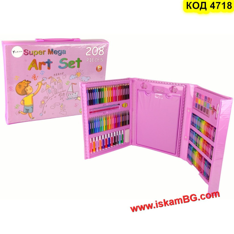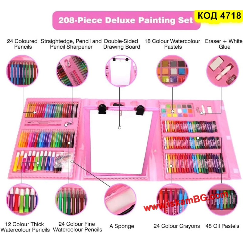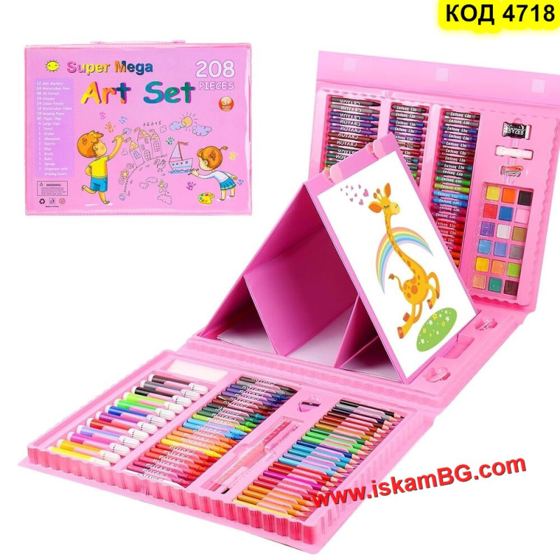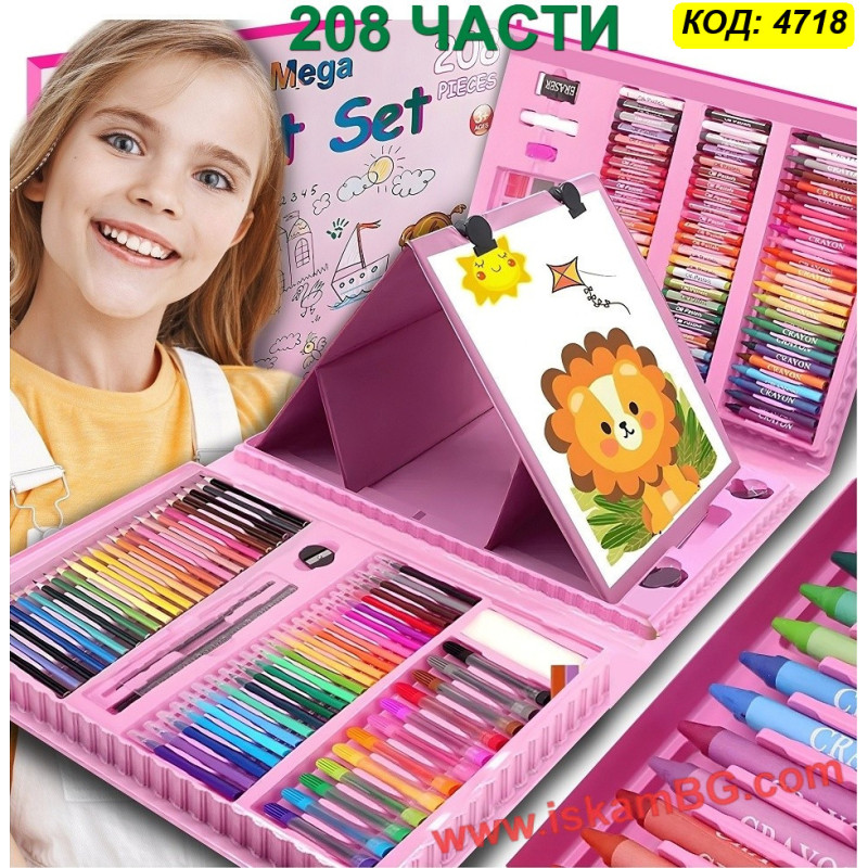 ГИГАНТСКИ КОМПЛЕКТ ОТ 208 ЧАСТИ: Той предлага огромно разнообразие – от цветни моливи и маслени пастели до водни бои и маркери. Всичко необходимо за всяка техника на рисуване е тук.