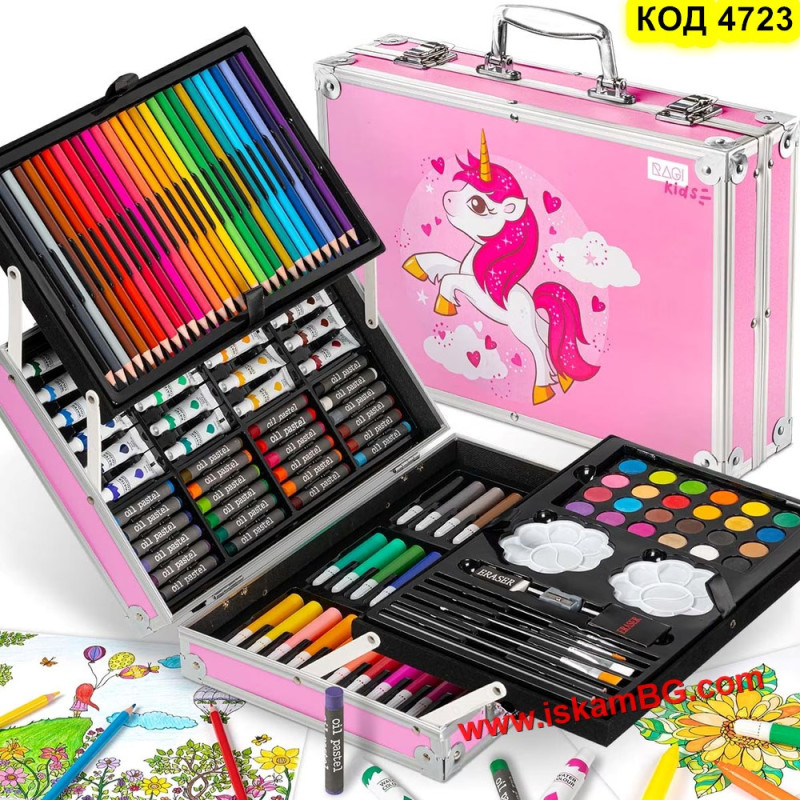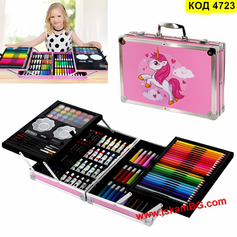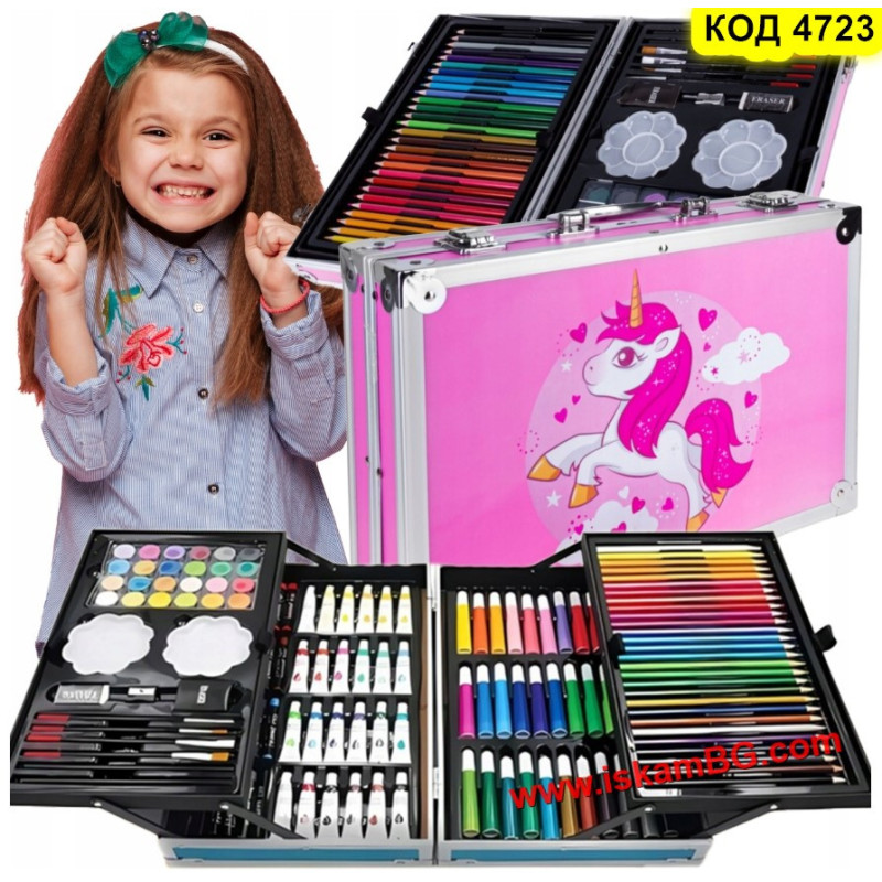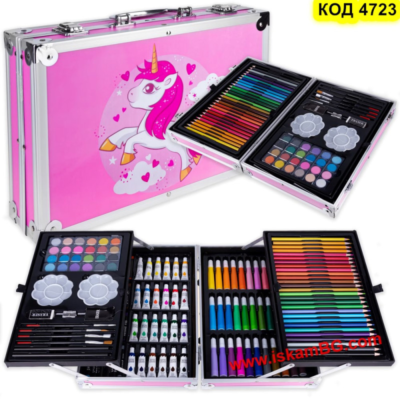 Не чакайте! Поръчайте този пълен арт комплект 145 части Розов Еднорог и подарете на вашето дете света на цветовете!