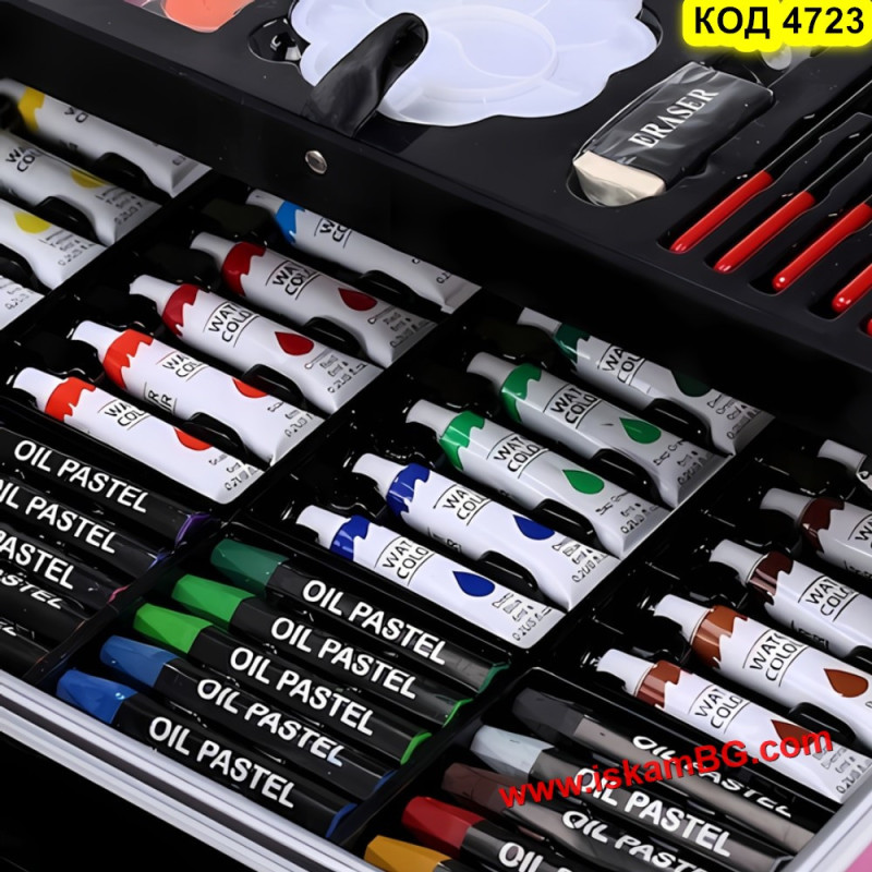 Този голям комплект за рисуване предлага разнообразие от висококачествени материали, подходящи за различни техники: