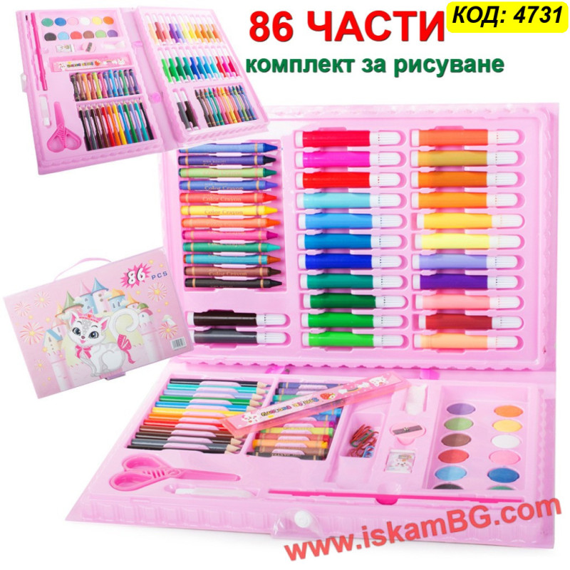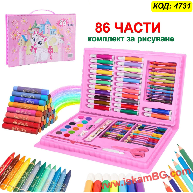 Направете най-добрия подарък с този огромен детски комплект за рисуване! Всички 86 части са прибрани в удобно куфарче, готово да вдъхнови всеки малък художник и да осигури часове творческо забавление.    Виж пълното описание