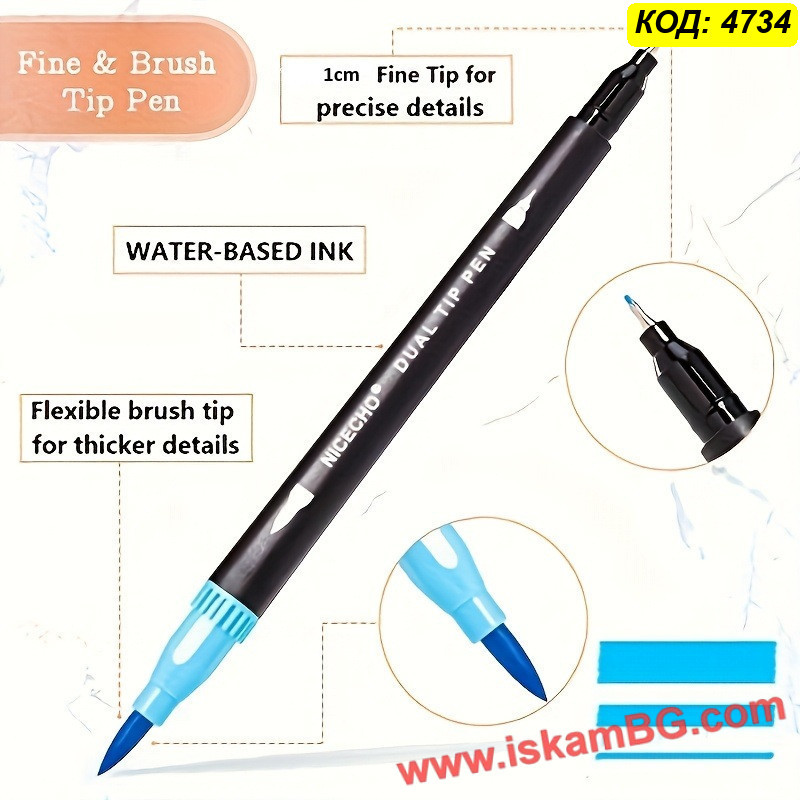 Двоен връх (Dual Tip): Всеки маркер е оборудван с два функционални върха за максимална гъвкавост: