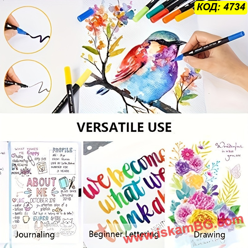 Тип на продукта: Комплект двувърхи акварелни маркери (Dual Tip Watercolor Markers).