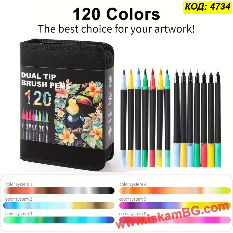 Брой цветове: Комплектът съдържа 120 уникални, ярки цвята, които осигуряват богатство и разнообразие за всеки проект.