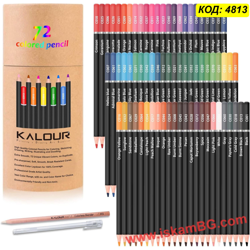 Пренесете творчеството си на следващото ниво с комплекта професионални цветни моливи Kalour от 72 цвята. Създадени за художници, които не правят компромис с качеството, тези моливи предлагат изключителна наситеност и яркост на цветовете.