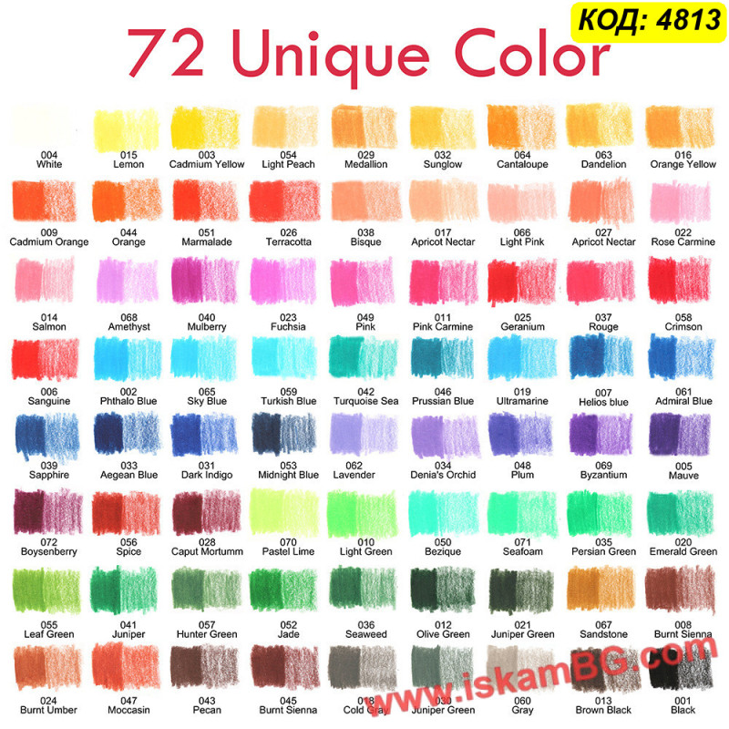 Всеки молив е надписан с уникален номер и име на цвета за лесна ориентация. Екологичният цилиндричен тубус не само изглежда страхотно на бюрото, но и предпазва моливите при пренасяне, спестявайки място. Независимо дали сте начинаещ ентусиаст или опитен художник, този комплект ще ви осигури всичко необходимо за вашите арт проекти.