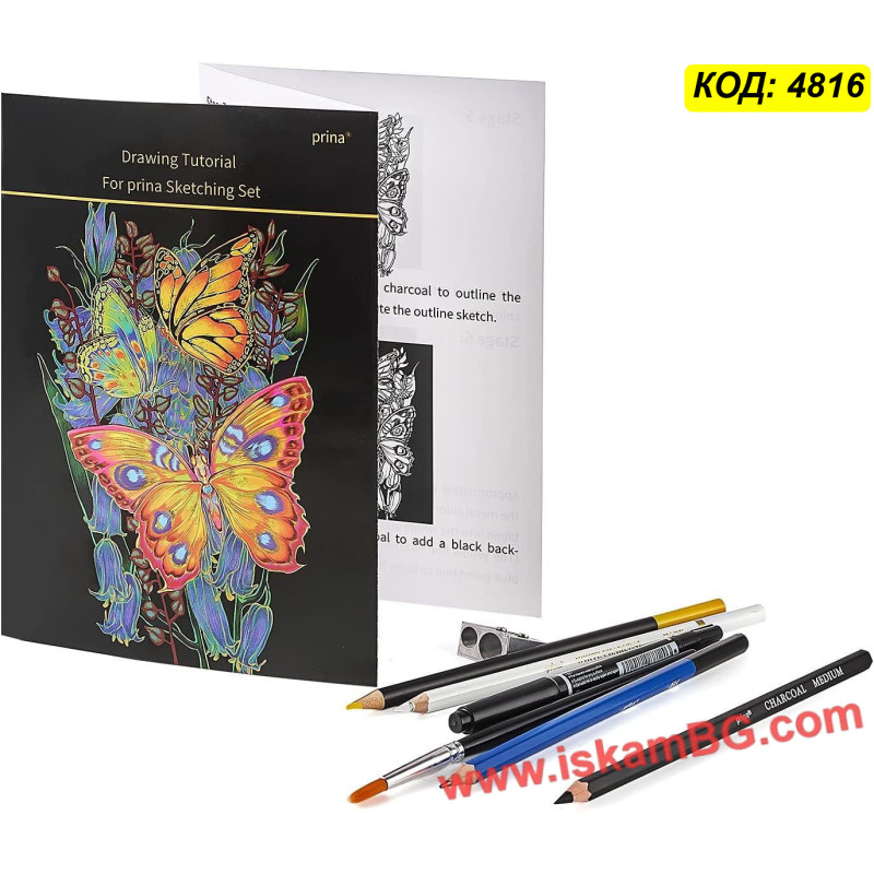 • 12 бр. Въглени моливи (Charcoal Pencils - черни и цветни).