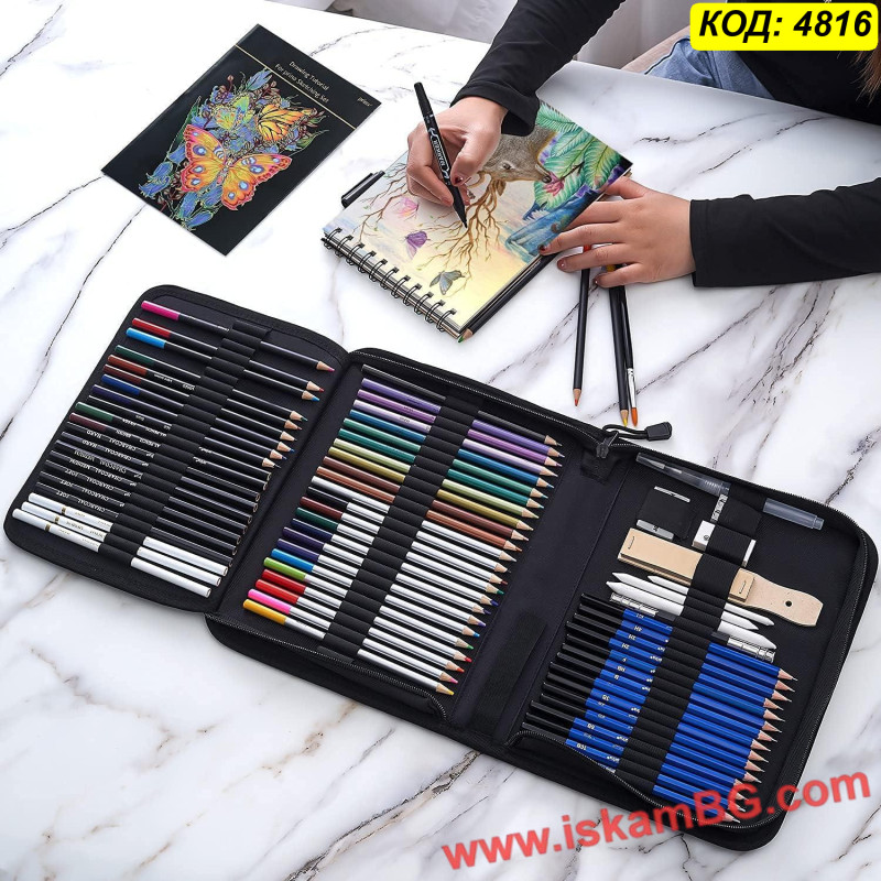 • Класика и Цвят: Насладете се на богата палитра от стандартни цветни моливи за насищане и професионални графити за прецизни контури и сенки.