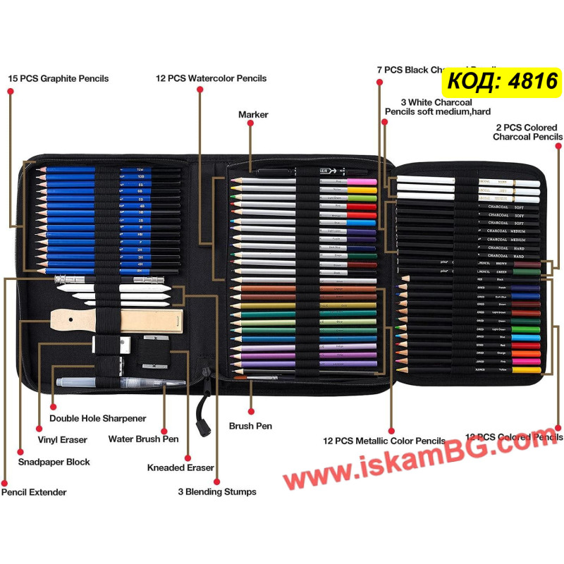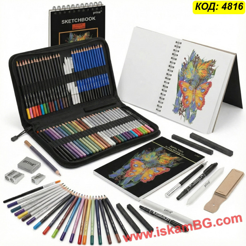 Голям Арт Комплект Prina 76 Части – Акварелни, Цветни, Металик и Графитни Моливи