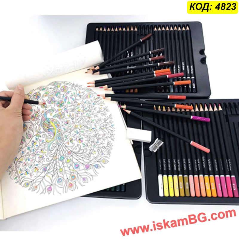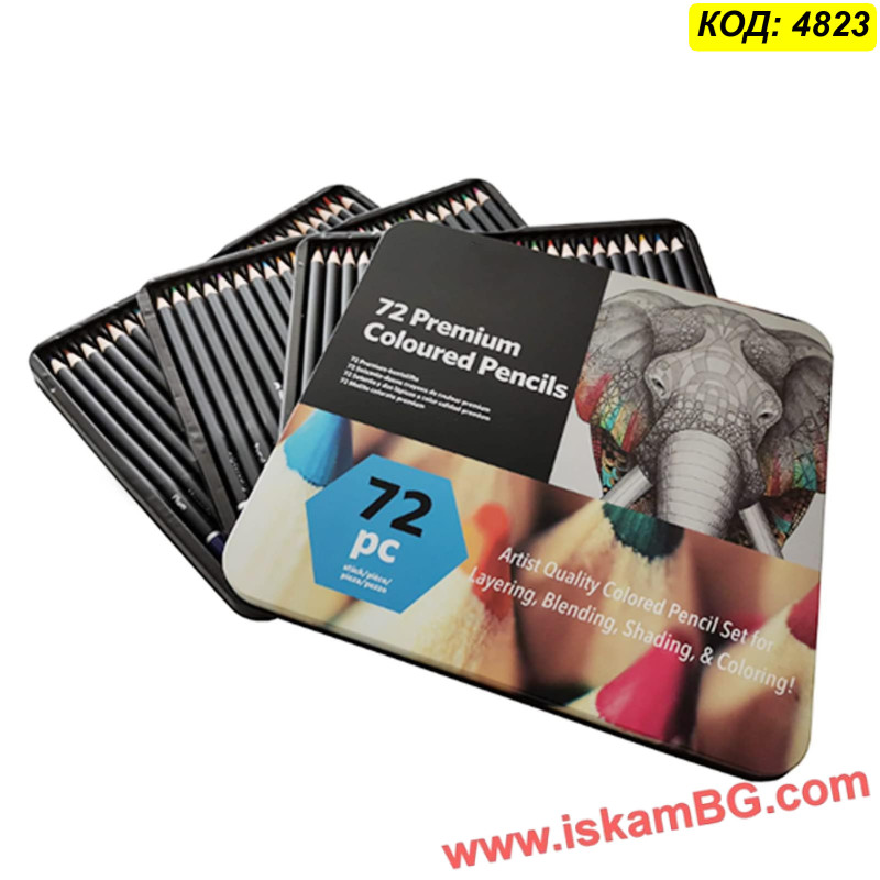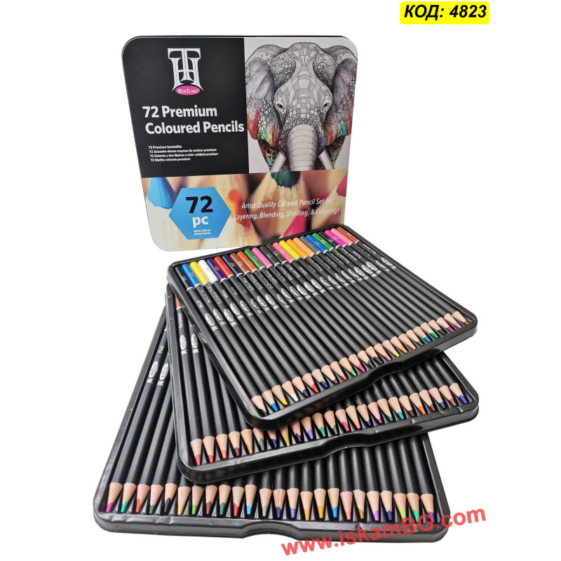 72 бр. цветни моливи с черен корпус.
