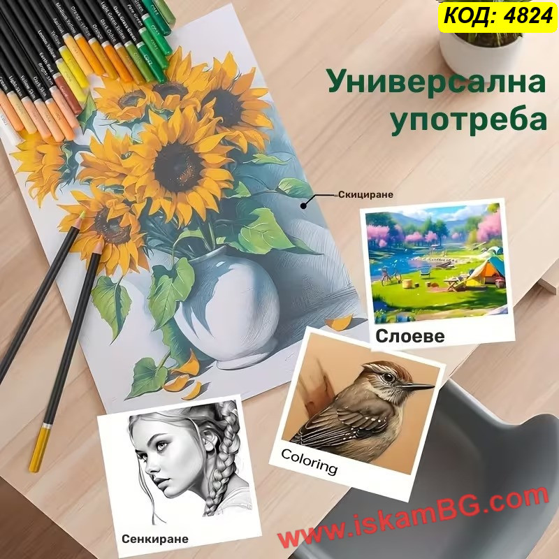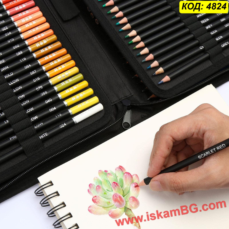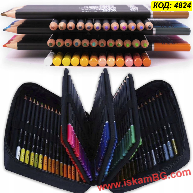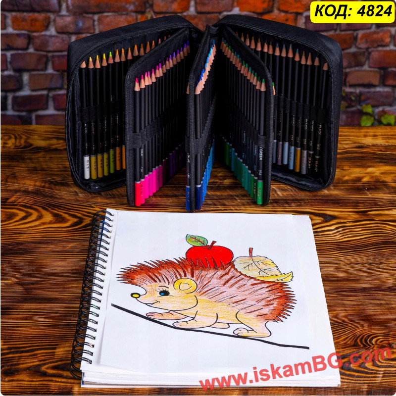 Но удобството не е за сметка на качеството. Моливите са с луксозен черен корпус и цветни върхове за бърза ориентация. Сърцевината им е "Soft Core" (мека), което означава маслена гладкост при нанасяне, лесно смесване на цветовете и плътно покритие без драскане на листа. Организацията вътре е тип "книга" с прелистващи се страници, което ви дава мигновен поглед върху цялата гама. Това е най-практичният избор за студенти, пътуващи художници и всеки, който обича подреденото работно място.