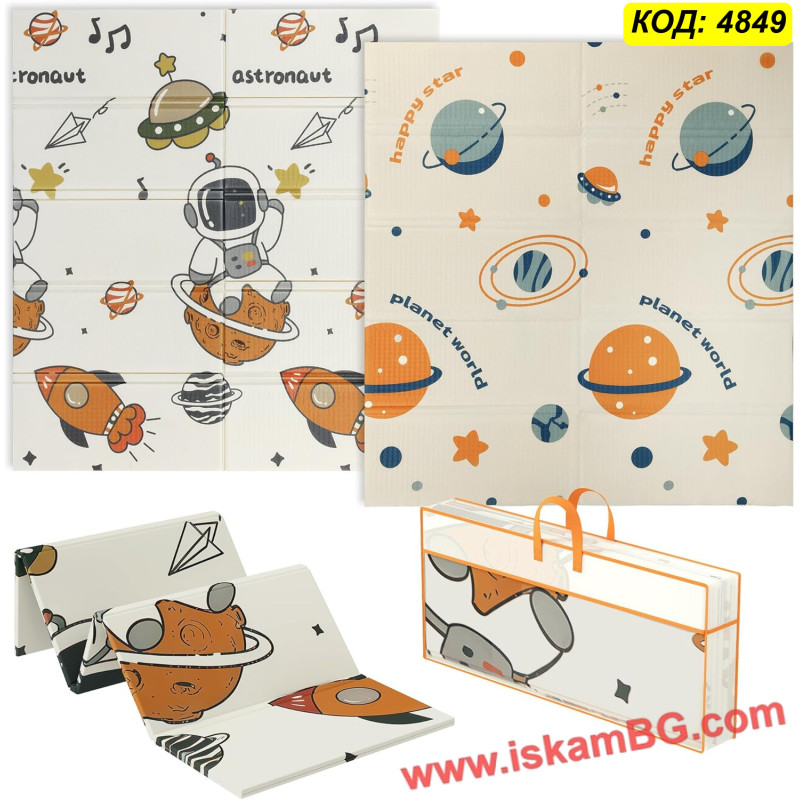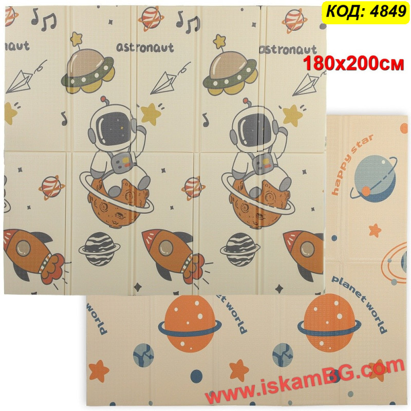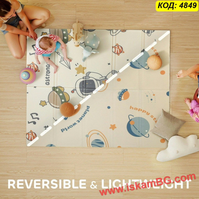 Пренесете детската игра в една нова галактика с това сгъваемо термоизолиращо килимче. Големият размер 180 на 200 см предлага обширно и безопасно пространство за игра, пълзене и първи стъпки. Уникалният Космос дизайн не само е атрактивен за децата, но и стимулира любопитството им към света. Изработено от нетоксична XPE пяна, килимчето осигурява надеждна топлоизолация от студения под и отлична ударопоглъщаща мекота при падане. Неговото ключово предимство е сгъваемата функция (тип хармоника), която позволява прибиране и съхранение за секунди, което го прави идеален избор за всеки модерен дом.