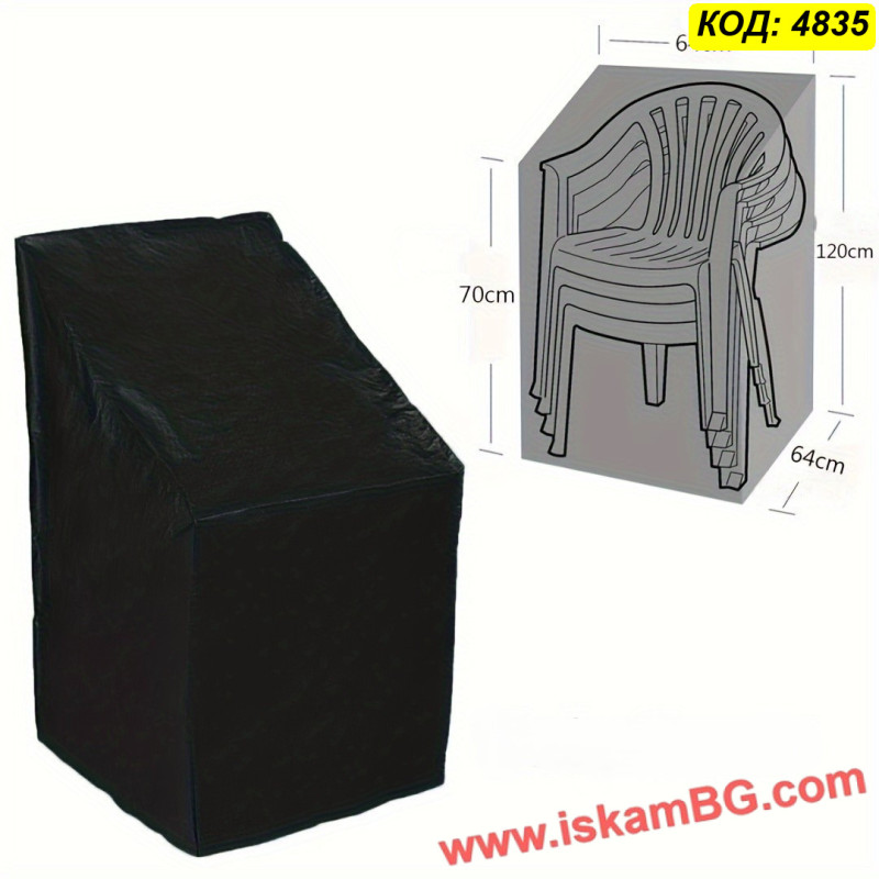 Организирайте и защитете вашата градина или тераса с това практично покривало за стифиращи столове. Вместо да покривате мебелите поотделно, просто ги наредете един върху друг и използвайте този висок калъф (120 см в задната част). Това е най-ефективният начин да освободите пространство през зимата, като същевременно гарантирате, че столовете ще останат чисти и сухи.