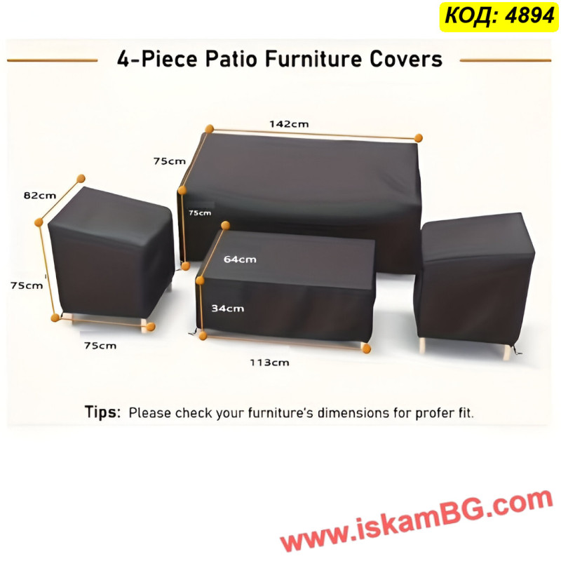 Надеждна защита: Предпазва мебелите от влага, дъжд, сняг, птичи замърсявания, прах и UV лъчи.