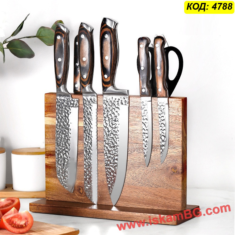 Преобразете работното си пространство с нашата първокласна магнитна дървена стойка за ножове. Създадена за ценители, тя не е просто поставка, а елегантен интериорен акцент, който решава вечния проблем със съхранението на остри предмети.