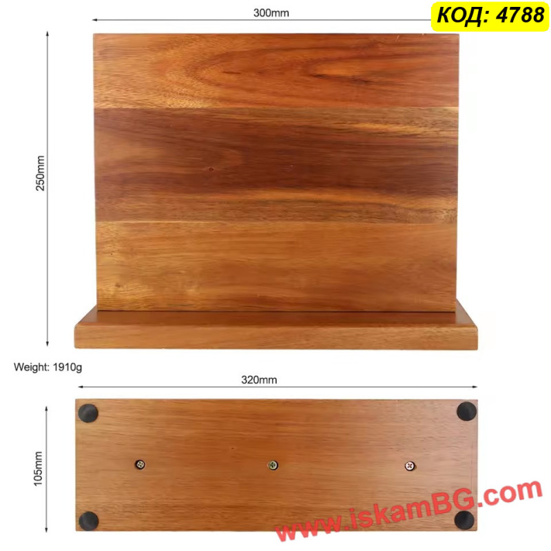 1 бр. Магнитна дървена стойка за ножове (сглобена)