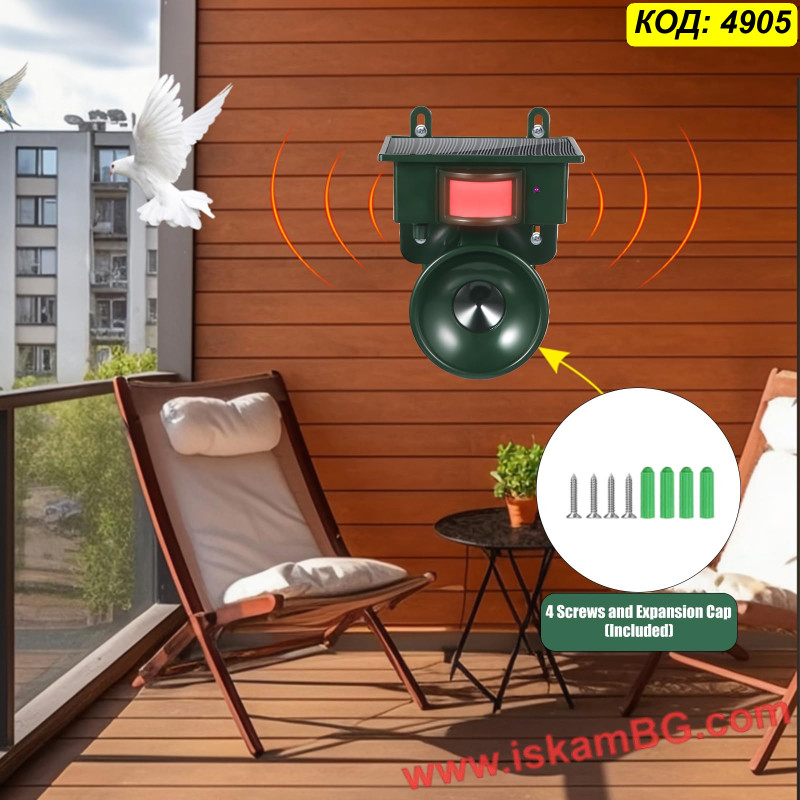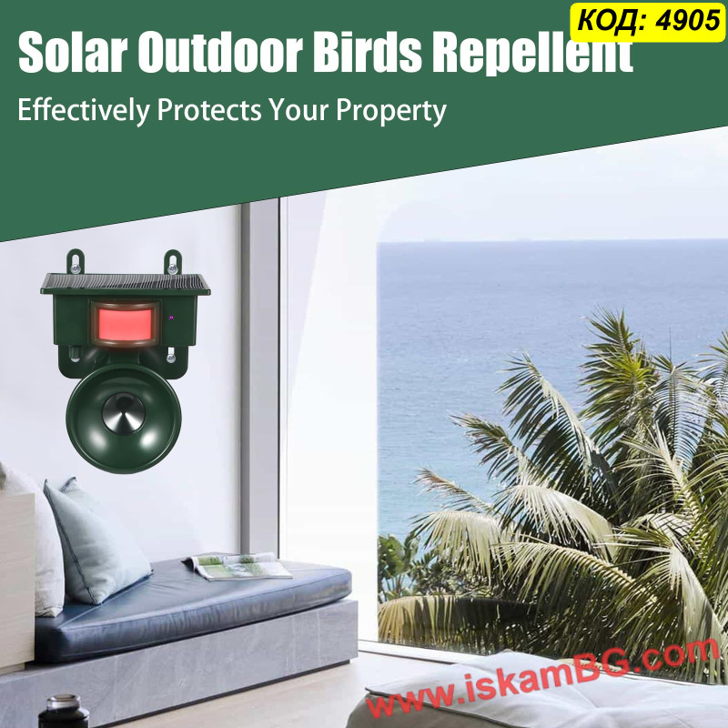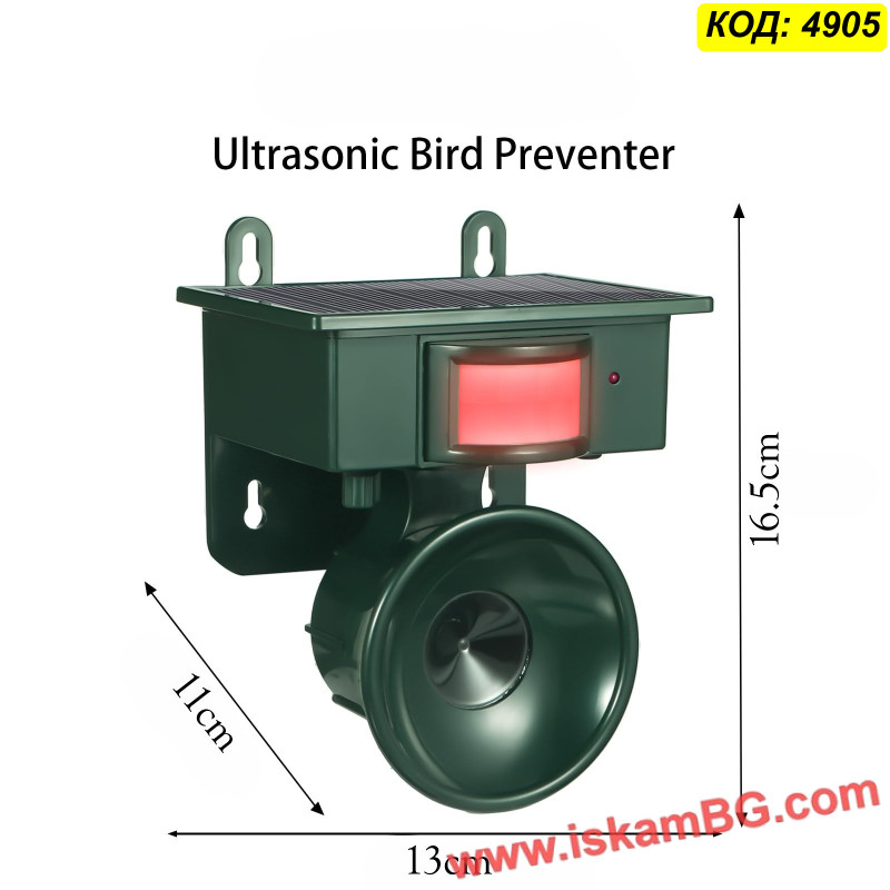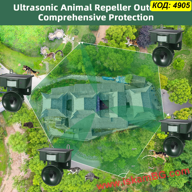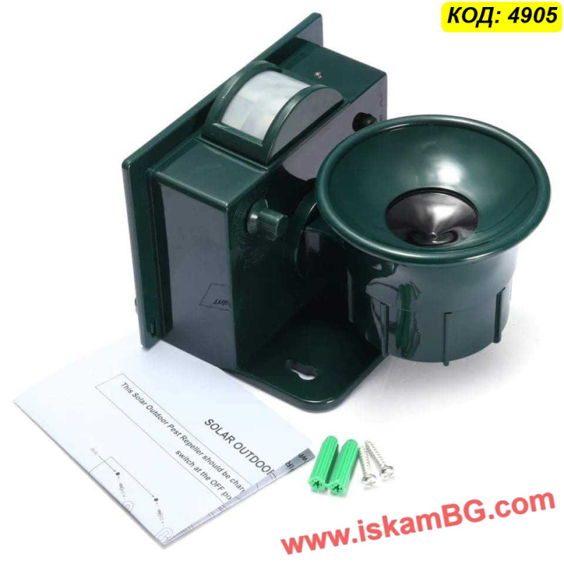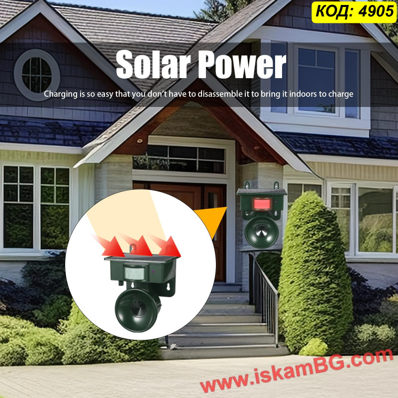 Този външен уред предлага хуманен и екологичен начин да предпазите имота си от набези на животни. Устройството работи на принципа на ултразвука – при засичане на движение от вградения инфрачервен сензор (PIR), то генерира високочестотен звук. Този звук е изключително неприятен за животните (кучета, котки, лисици, гризачи, едри птици), което ги принуждава да напуснат зоната, без да бъдат наранени.