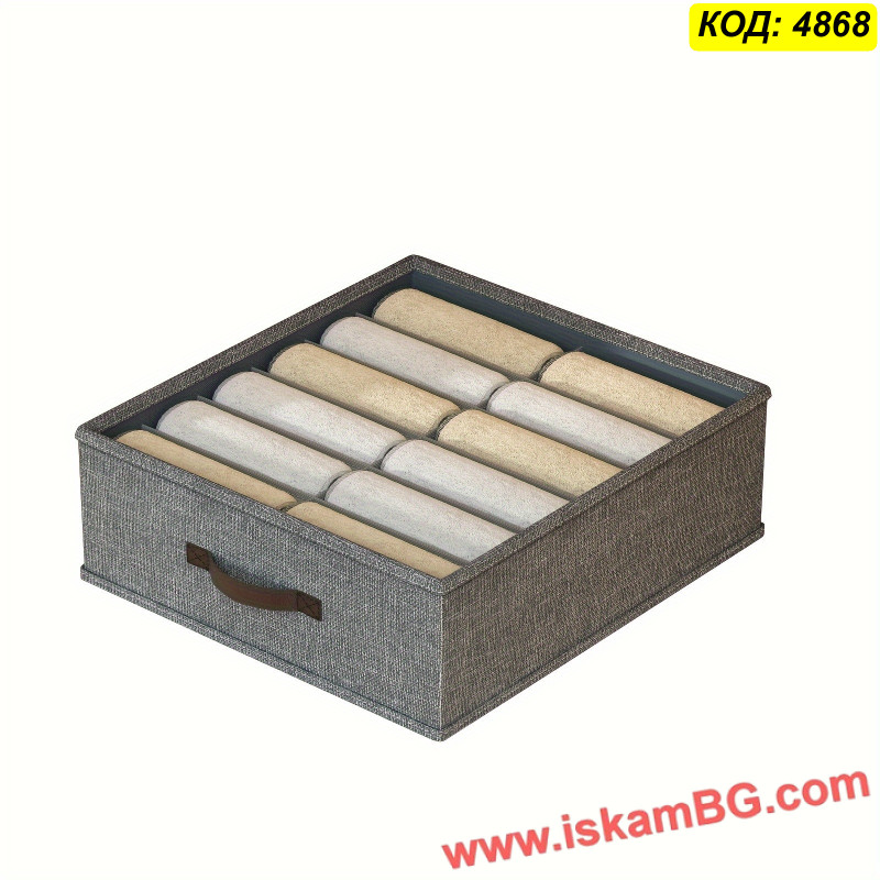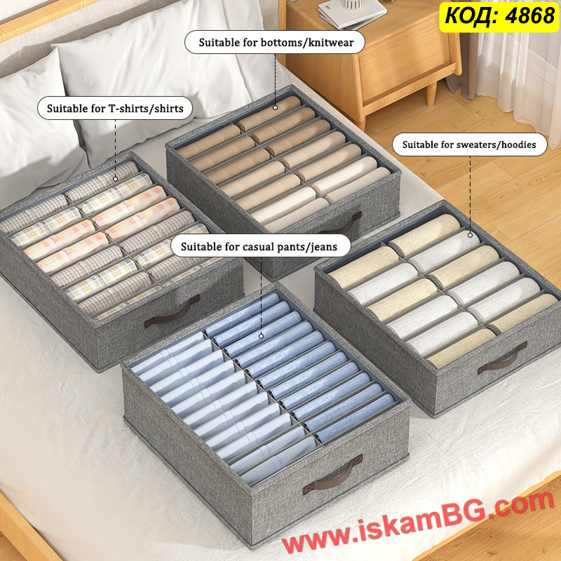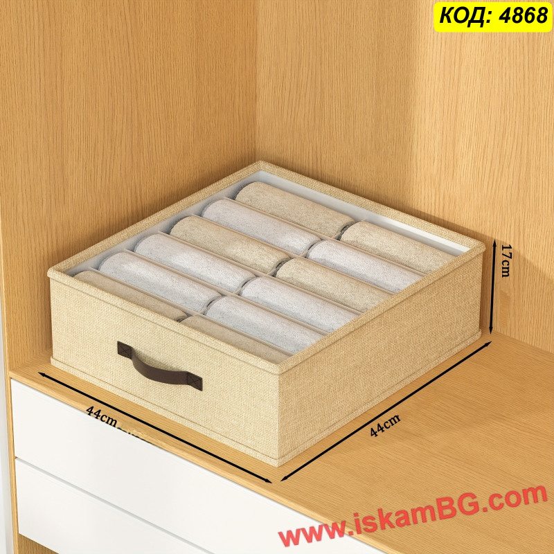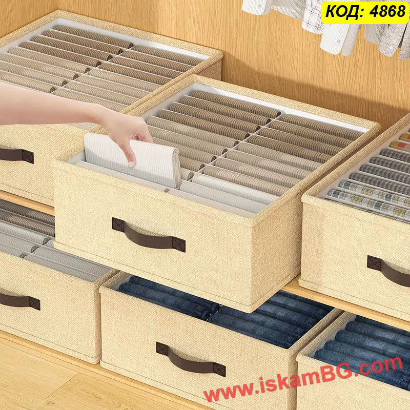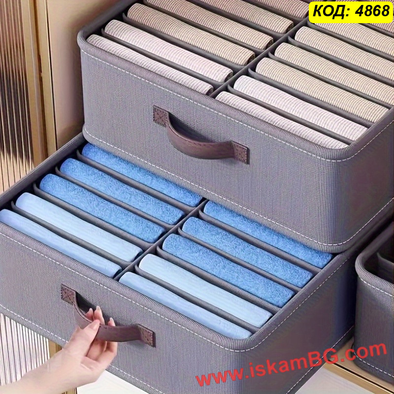 Уморени ли сте от разхвърляни купчини дрехи, които падат всеки път, когато дръпнете една тениска? Този текстилен органайзер с прегради е решението за модерен и функционален дом. За разлика от меките мрежести модели, тази кутия има структурирани стени, които запазват формата си дори когато органайзерът не е пълен.