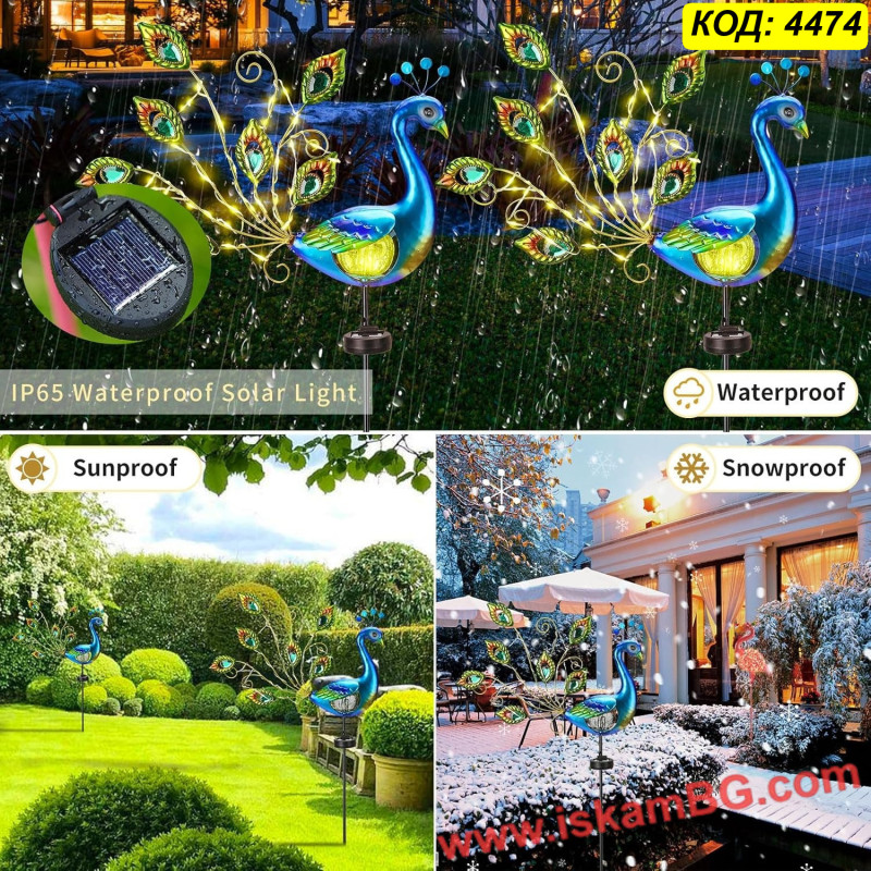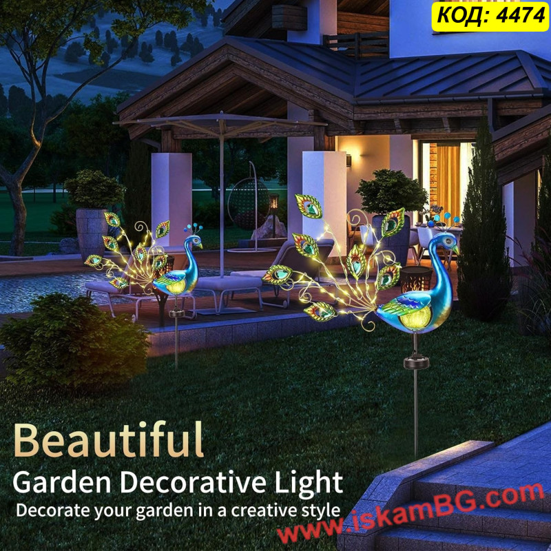 Уникалният дизайн във формата на паун с разкошна опашка е подчертан от топли LED светлини, вплетени в олекотени медни нишки. Перфектна за поставяне в цветни лехи, по пътеки, до огради или на терасата – тя автоматично ще се включи вечер и ще създаде вълшебна атмосфера.
