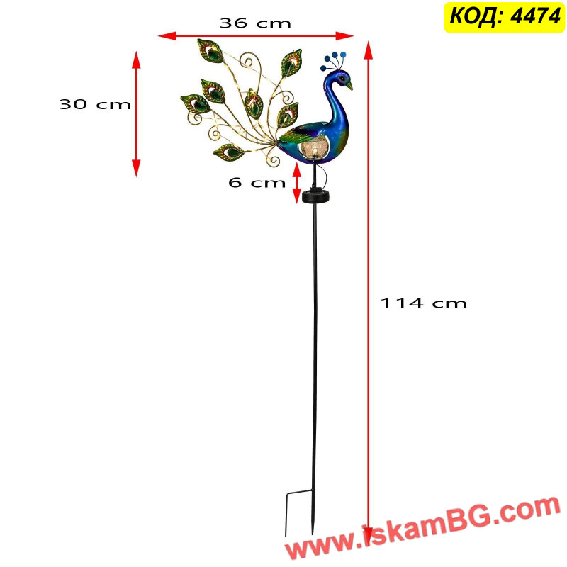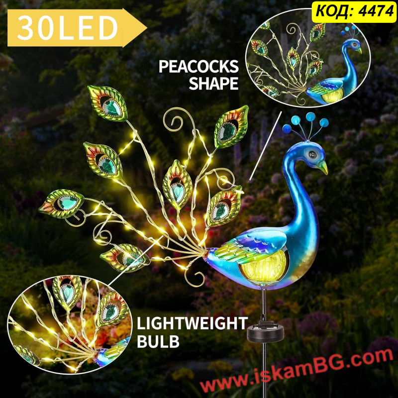 Форма: Декоративен паун с опашка от 30 LED светлини
