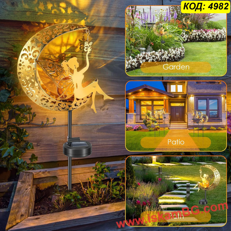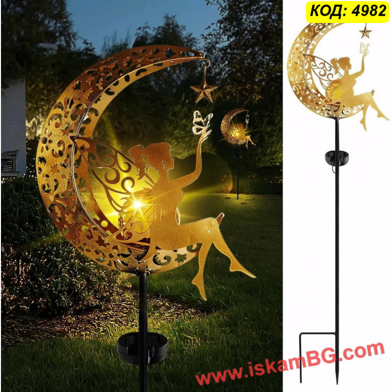 Тази соларна градинска лампа е предназначена за декоративно външно осветление в двор, градина, около алея или до цветна леха. Дизайнът с фея върху полумесец я прави подходяща за места, където освен светлина търсите и ясно изразен визуален акцент.