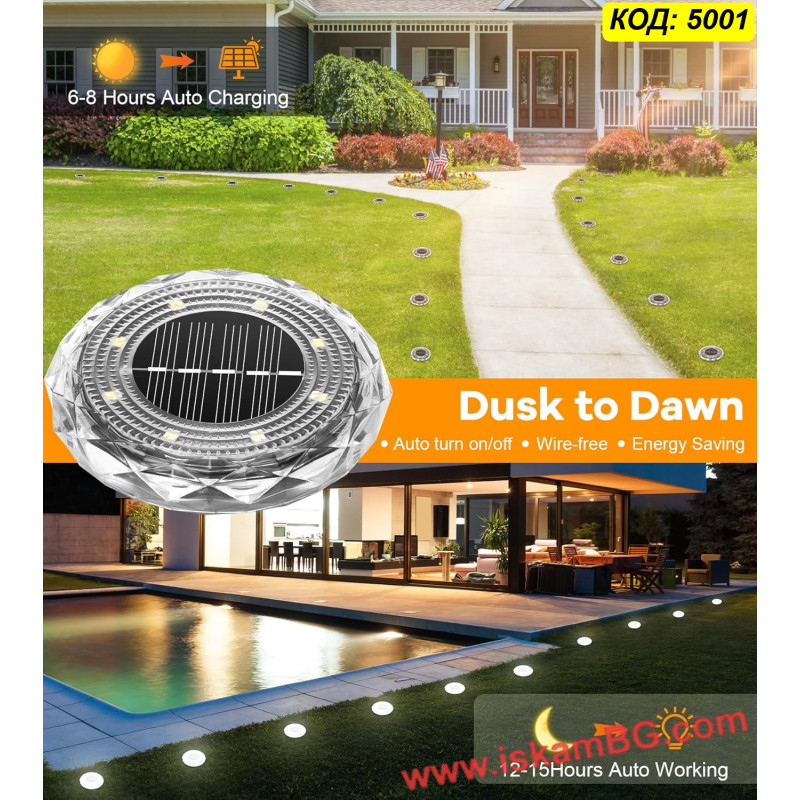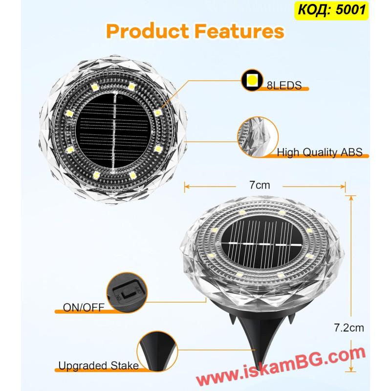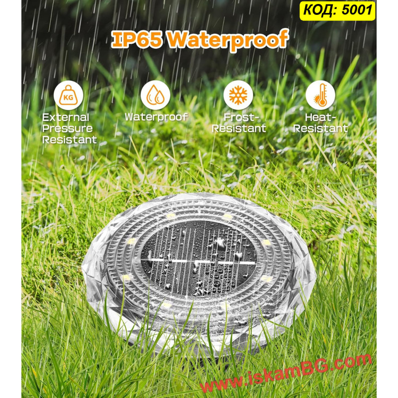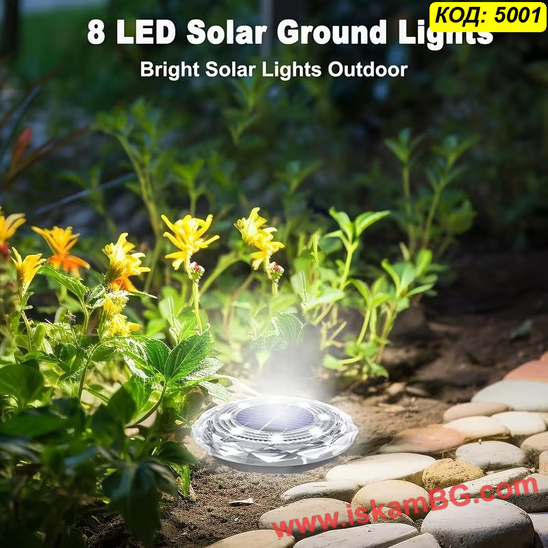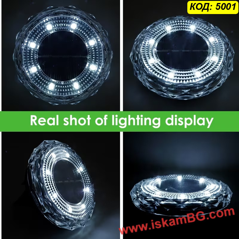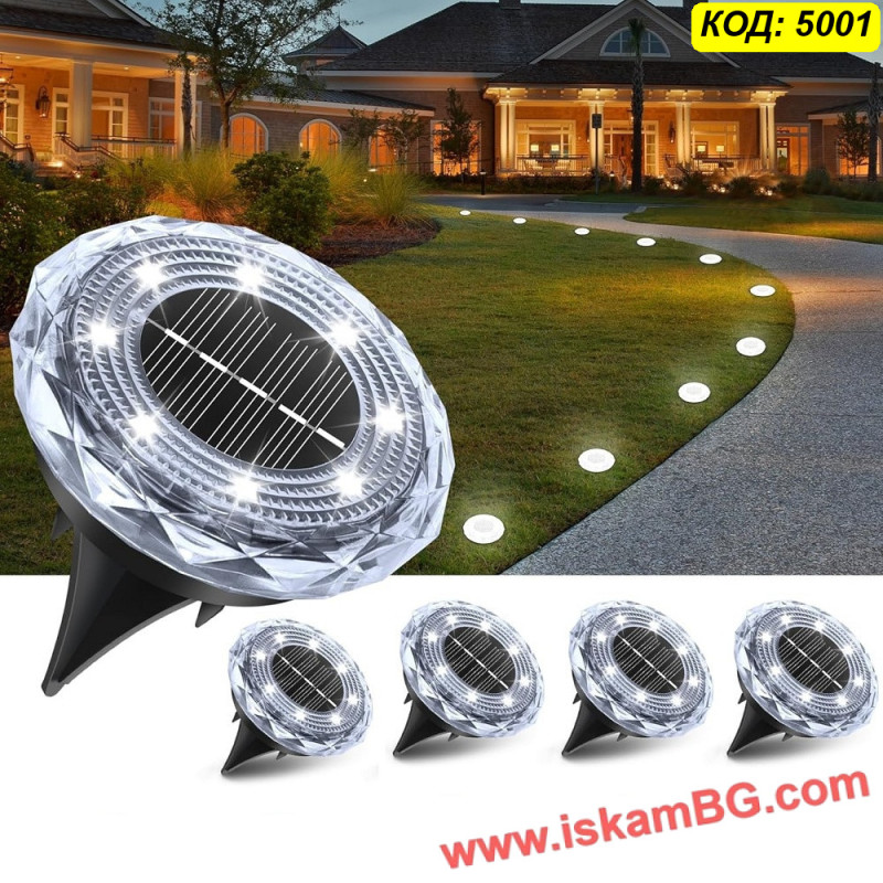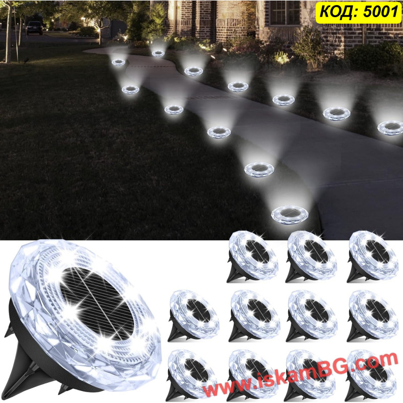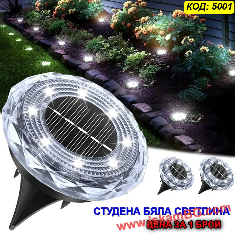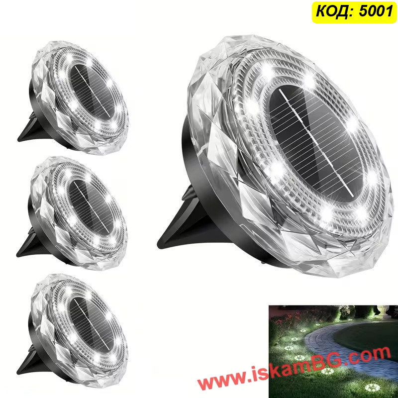 ЦЕНА ЗА 1 БРОЙ - Соларна LED лампа „Диамант“ за вграждане в земята с 8LED