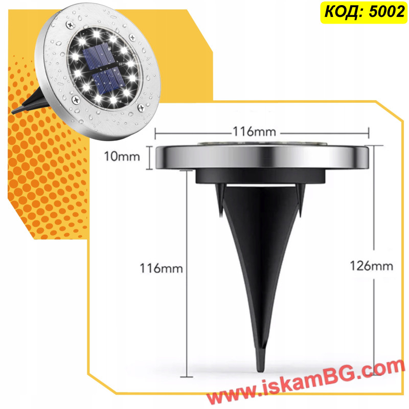 Соларна лампа „Диамант“ със студена бяла светлина за градина, алеи и пътеки - ЦЕНА ЗА 1 БРОЙ !