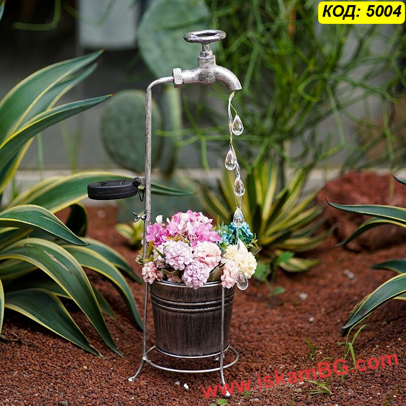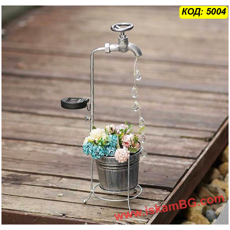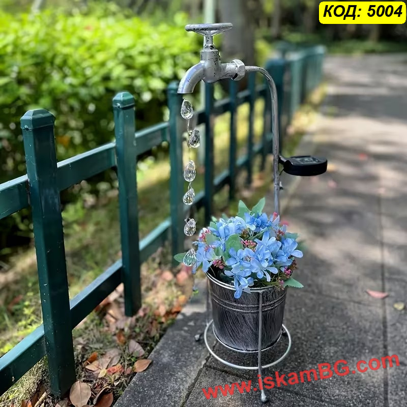 1 брой соларна градинска лампа „Вълшебна чешма“ с кристални капки и метална саксия