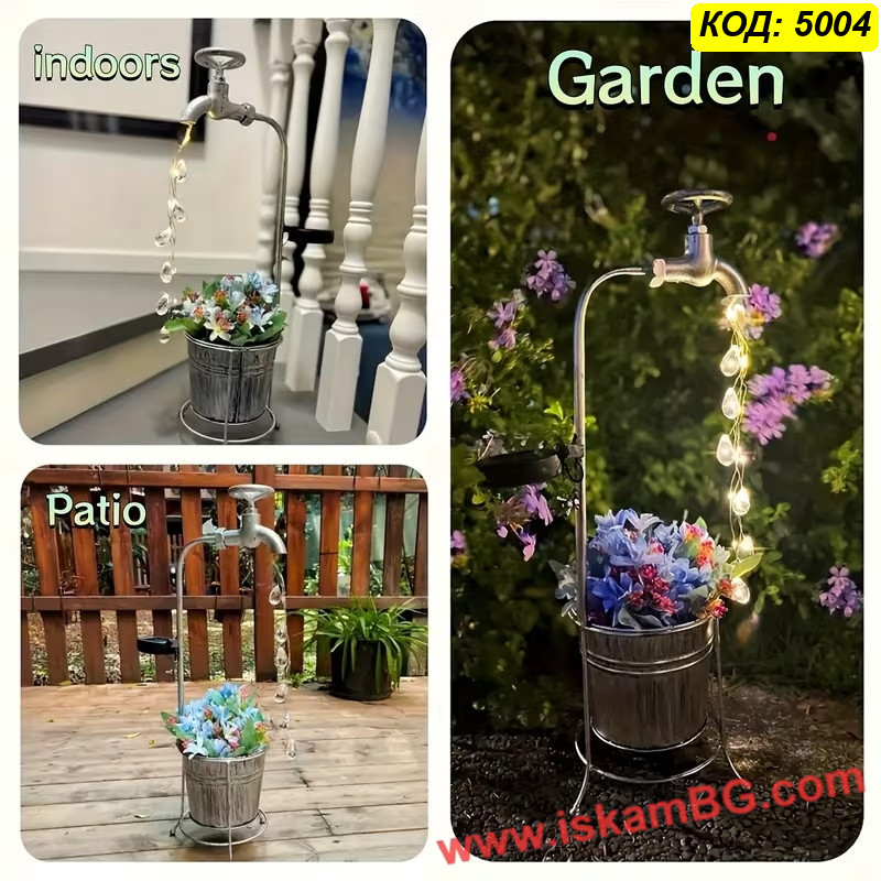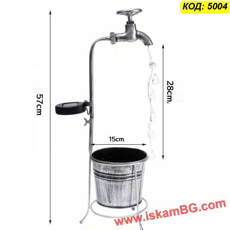 • Дизайн: чешма с кристални LED капки и метална саксия