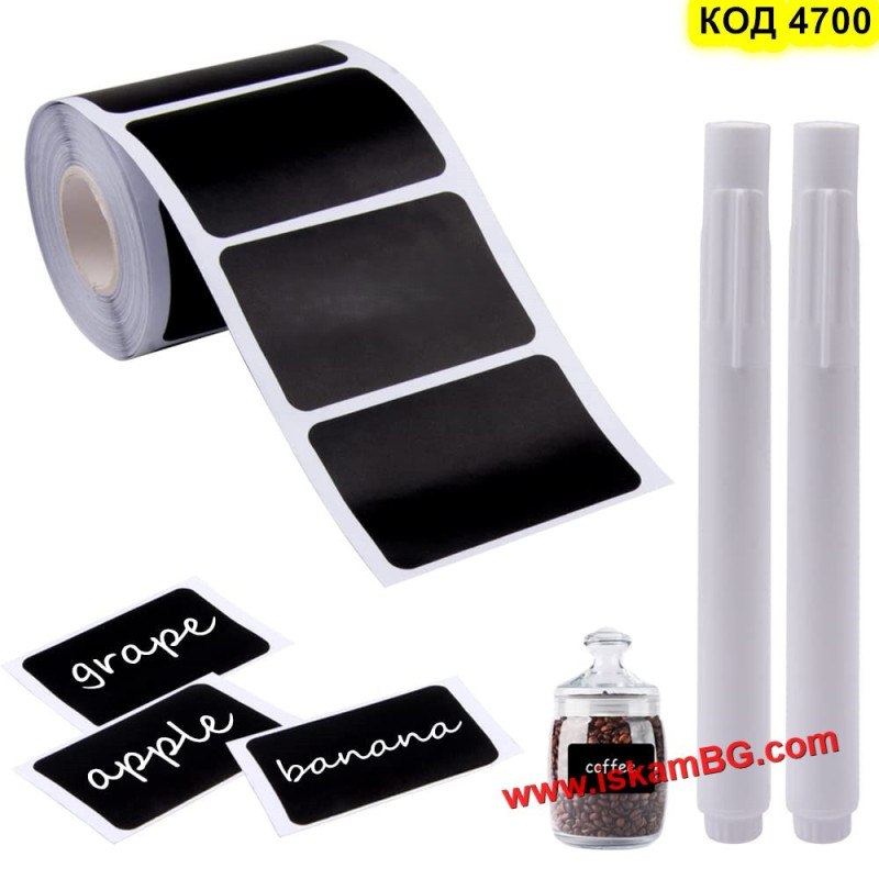 • 1 ролка със 120 броя самозалепващи се етикети тип "Черна дъска"