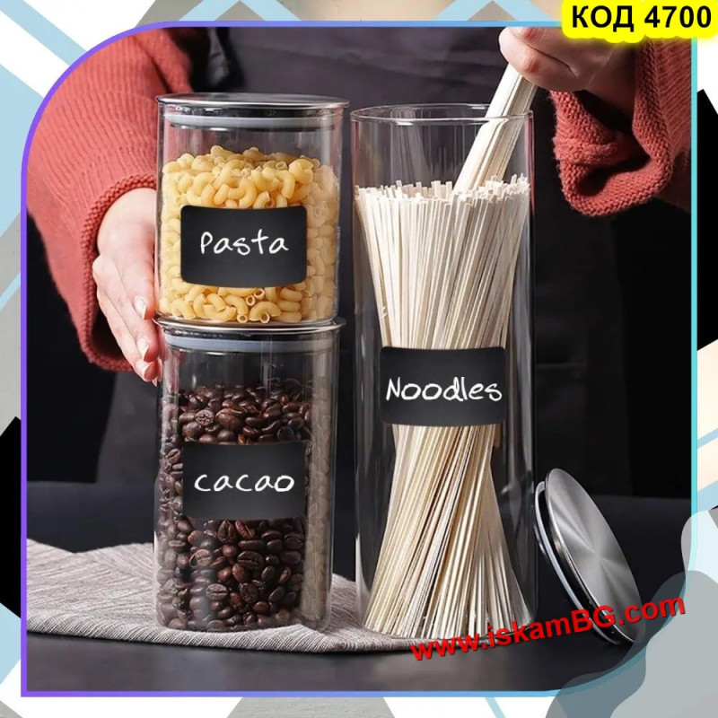 Комплектът самозалепващи етикети „Черна Дъска“ е идеалното решение за стилна и гъвкава организация на вашия дом. Тези етикети за буркани за многократна употреба ви позволяват лесно да надписвате и променяте съдържанието на вашите контейнери с помощта на течен тебешир или обикновен тебешир.