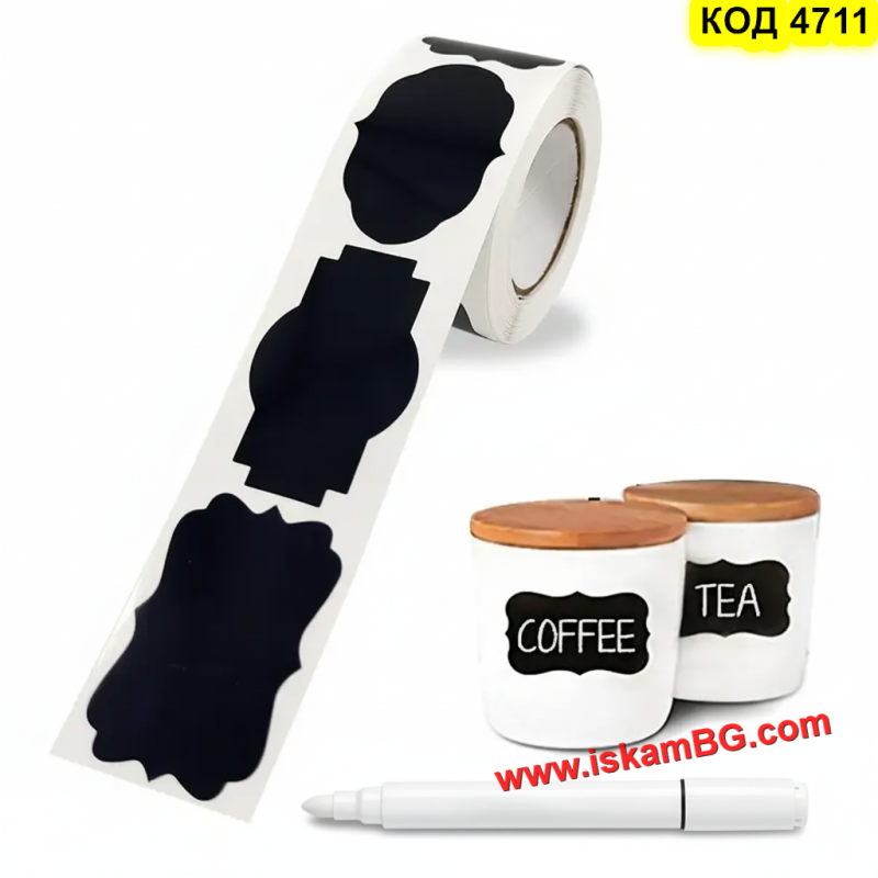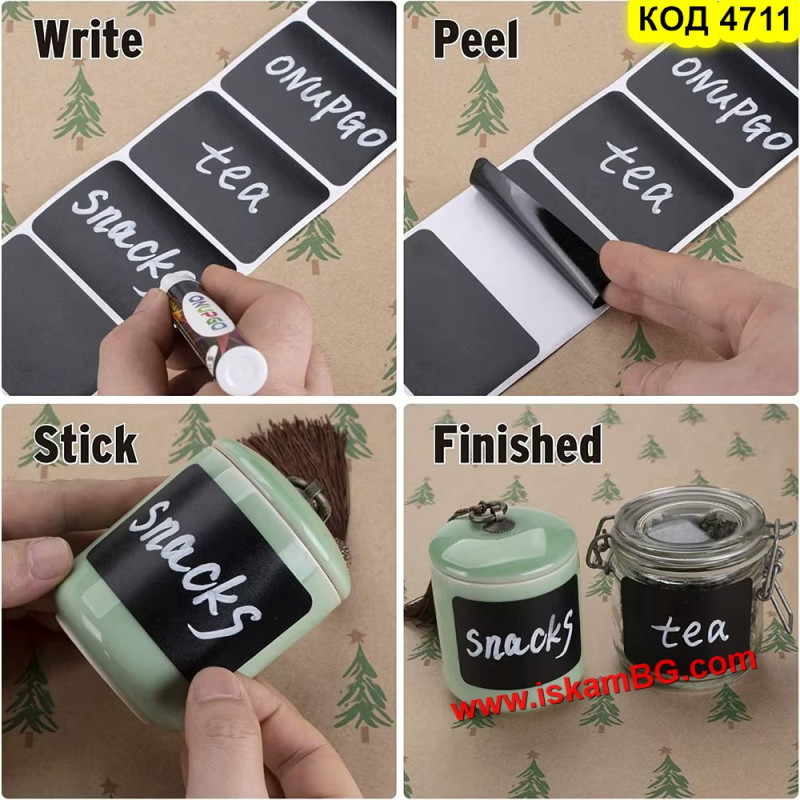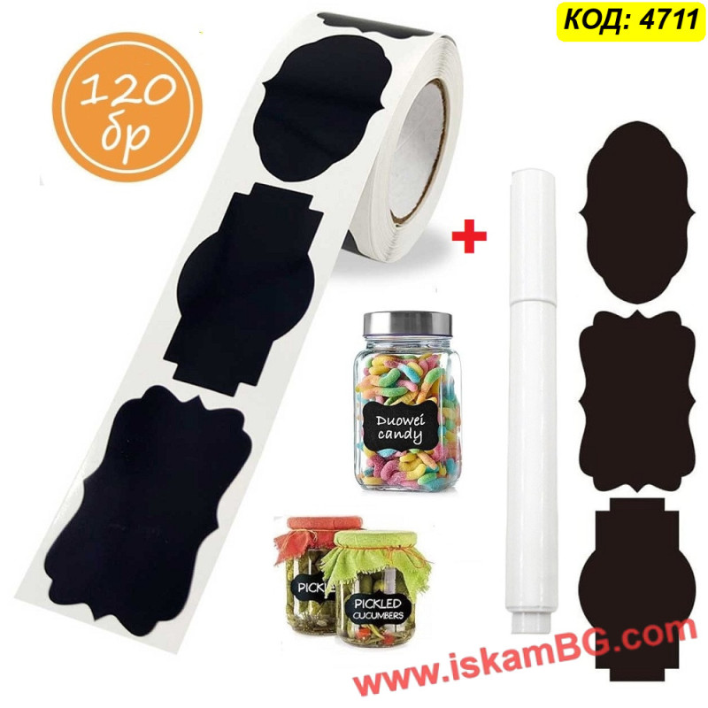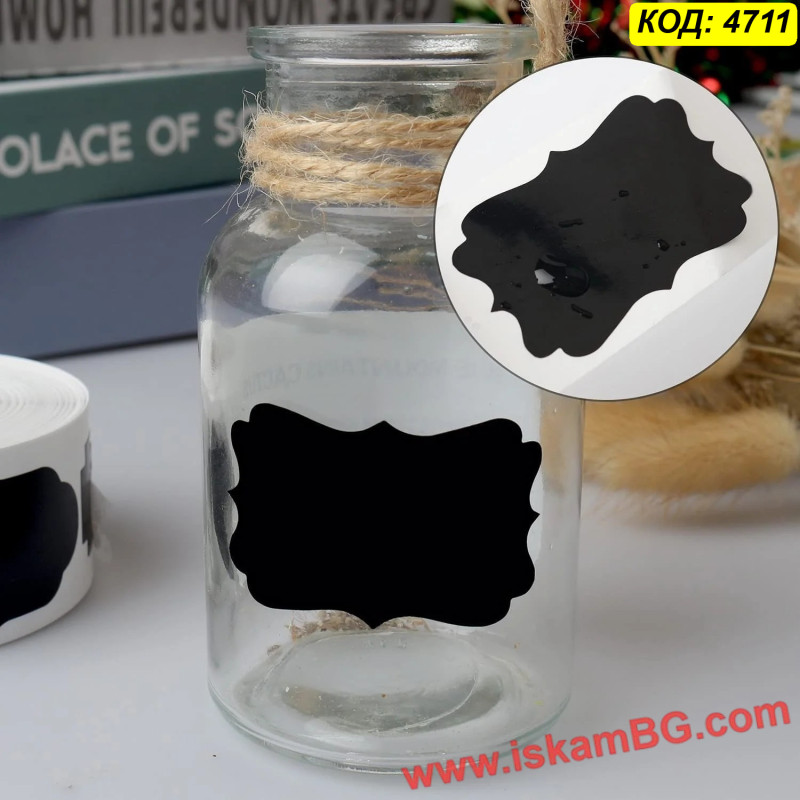 Тези висококачествени черни етикети за буркани са перфектното решение за стилна и подредена организация на Вашата кухня, килер или работилница. Изработени от издръжлив, водоустойчив винил, те позволяват многократно писане и изтриване с тебеширен маркер. Самозалепващи те се етикети са с атрактивна декоративна форма и са идеални за подправки и консерви.    Виж пълното описание