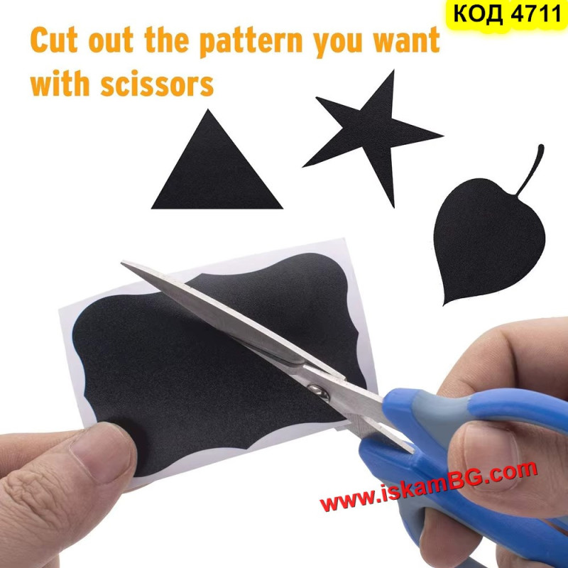 • Тип: Черни самозалепващи етикети на ролка, тип "Черна дъска".
